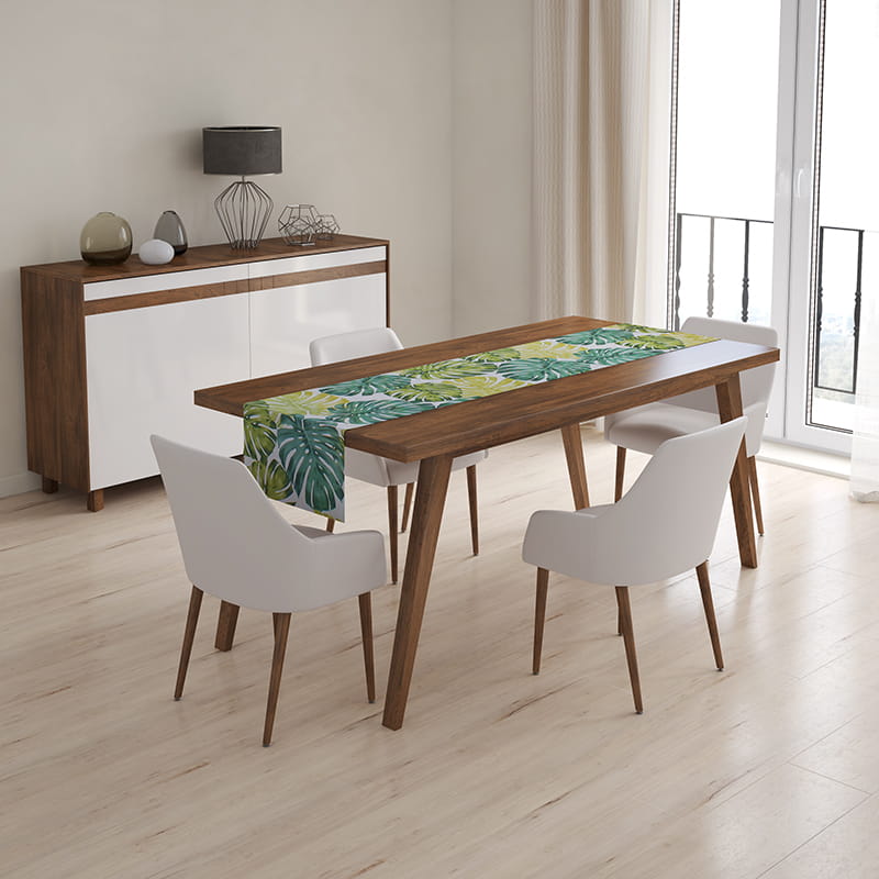 Aby bieżnik dobrze się prezentował na stole warto zadbać o dobór odpowiedniego rozmiaru (standardowo na zwis tkaniny przyjmuje się po ok 20 cm z każdej strony blatu).