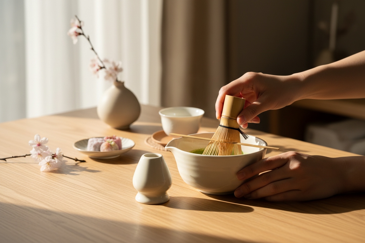 Każdy element został precyzyjnie dobrany, aby umożliwić przygotowanie matchy zgodnie z tradycyjnymi zasadami.