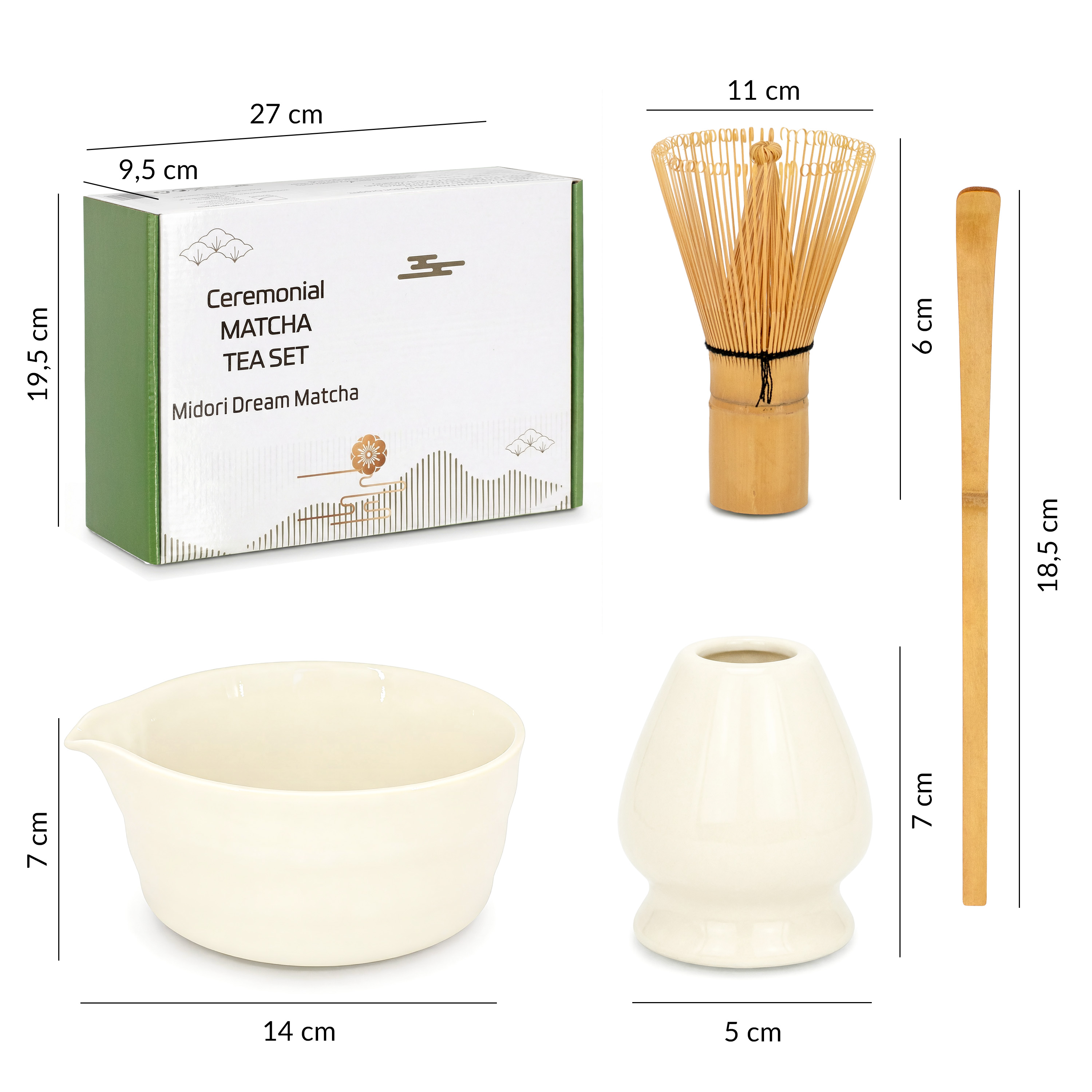 Zestaw do Parzenia Matchy CEREMONIAL MIDORI DREAM – Bone China Ivory / Ecru – Premium Matcha Tea Set
