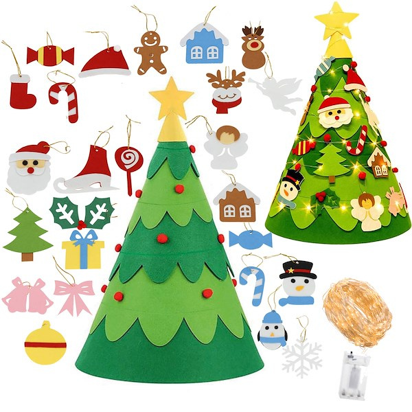 - Wielokrotnego użytku: Choinka i ozdoby wykonane są z trwałego filcu, co pozwala korzystać z zestawu przez wiele sezonów.