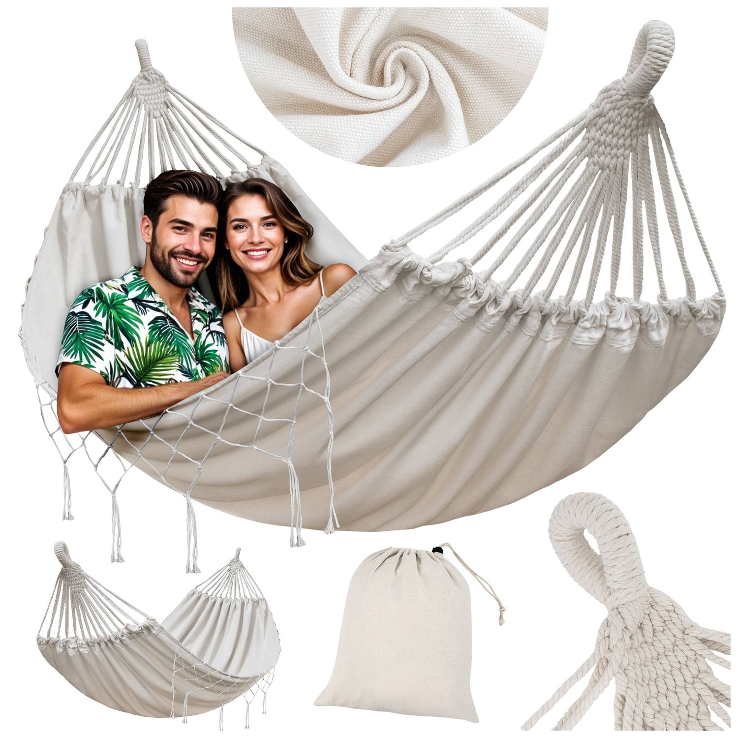 Dwuosobowy Hamak BOHO ISWING 280x150 Krem