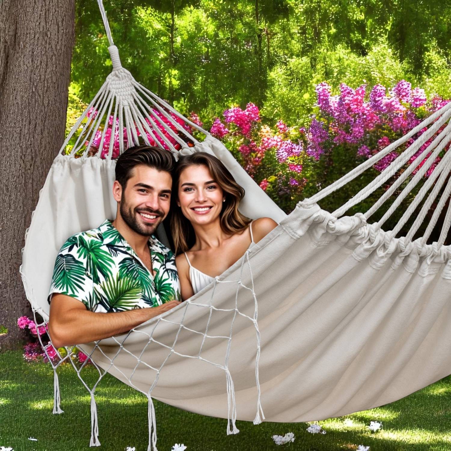 HAMAK Z FRĘDZLAMI 2 OSOBOWY XXL – 120kg 150x280 CM
