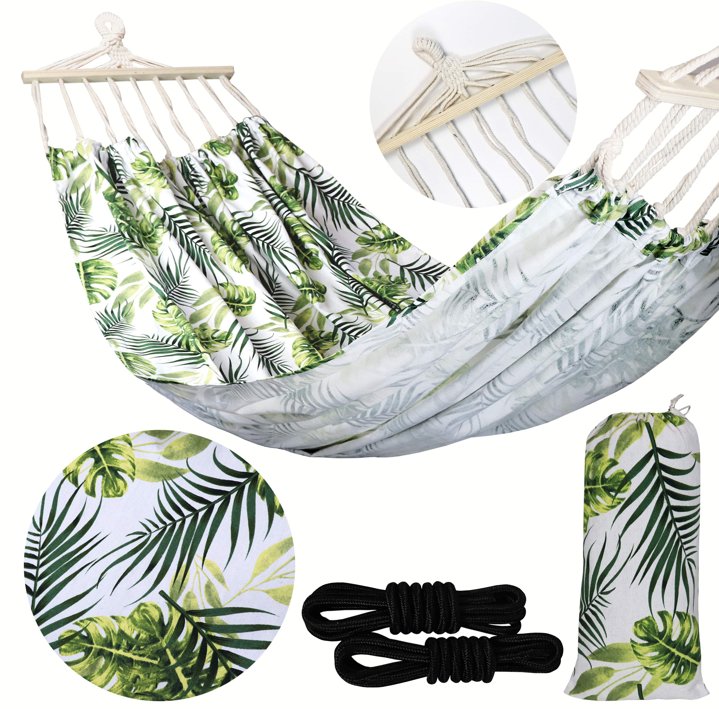 Duży dwuosobowy hamak dostępny w naszej ofercie sprawdzi się również jako prezent. Idealny do wypoczynku w ogrodzie na świeżym powietrzu, aby cieszyć się odpoczynkiem na łonie natury wystarczy przymocować do dwóch drzew lub dwóch wytrzymałych słupków lub innych podobnych konstrukcji.