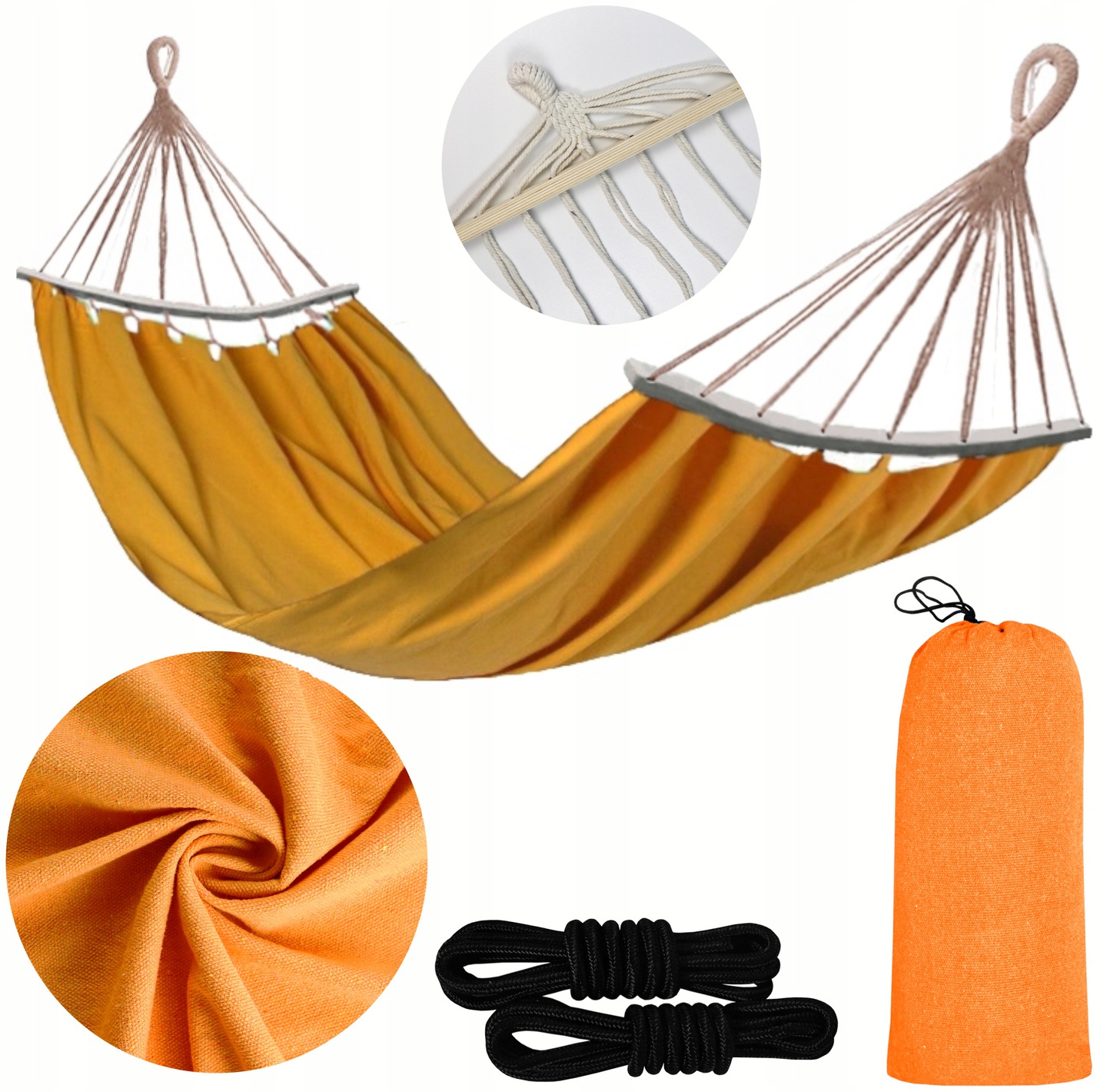 Duże rozmiary i wyjątkowo mocny splot płócienny sprawi, że hamak podczas użytkowania rozciągnie się i dopasuje do naszej sylwetki. Dodatkowym atutem jest optymalne rozłożenie ciężaru ciała oraz położenie się z prostym kręgosłupem. Duże wymiary materiałowej huśtawki umożliwiają stworzenie romantycznej atmosfery na łonie natury.