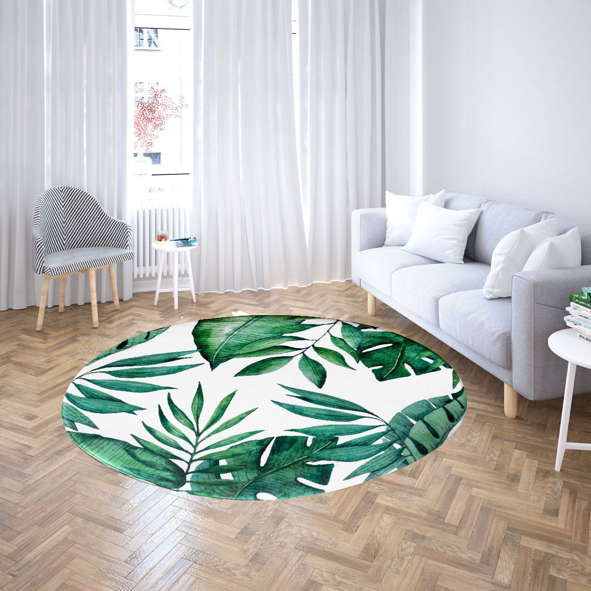Dywan Foam VIVA VERDE śr.90 cm koło Liście Zielony