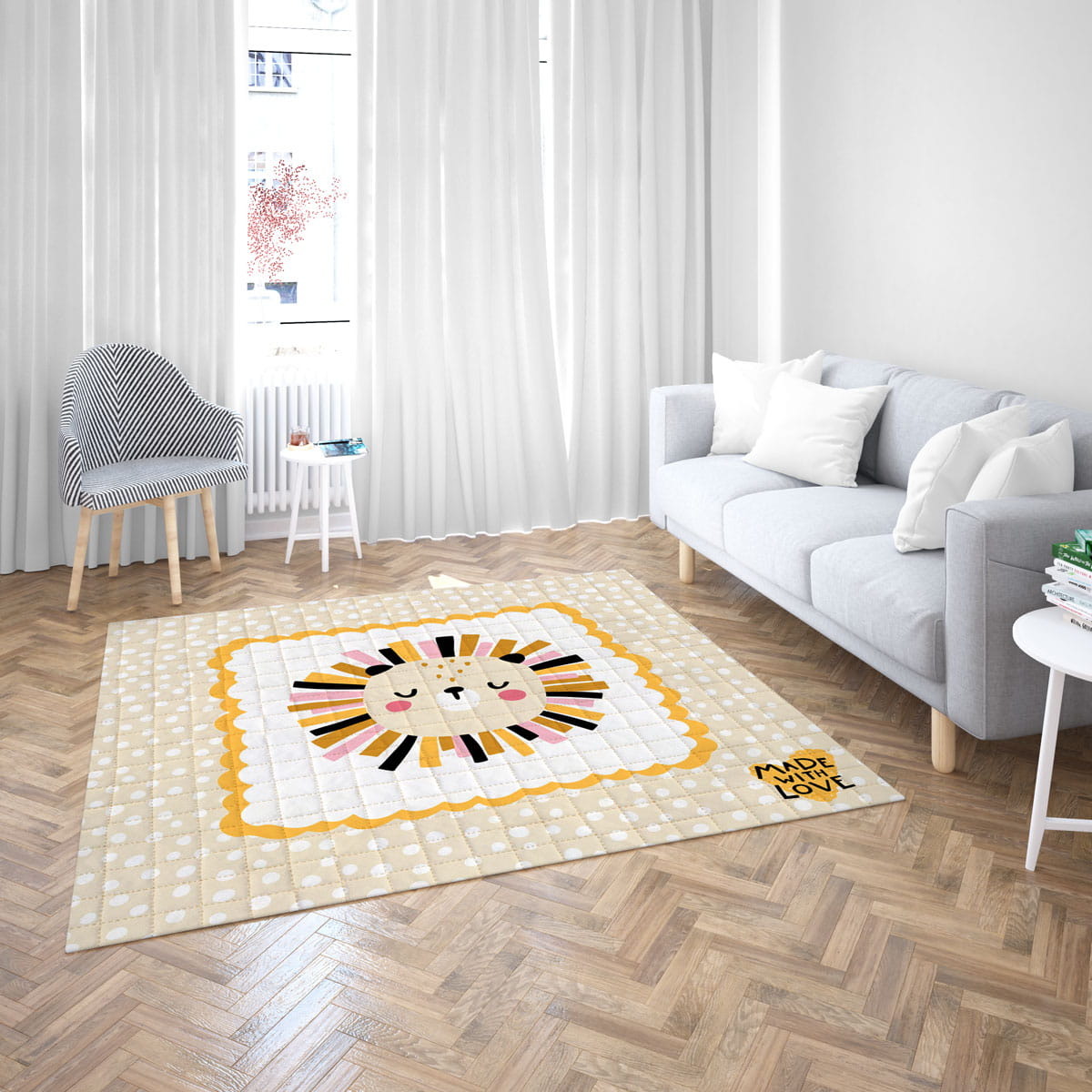Kolekcja BON-BON to dywaniki dziecięce wyróżniające się modną kolorystyką i ciekawym wzornictwem. Będą stanowiły idealny dodatek designerskiego pokoju dziecięcego, ale także będzie fantastycznym urozmaiceniem zabawy malucha. Duża gama kolorystyczna oraz wiele wzorów materiału dają możliwość idealnego dopasowania dywanika do swojego wnętrza.