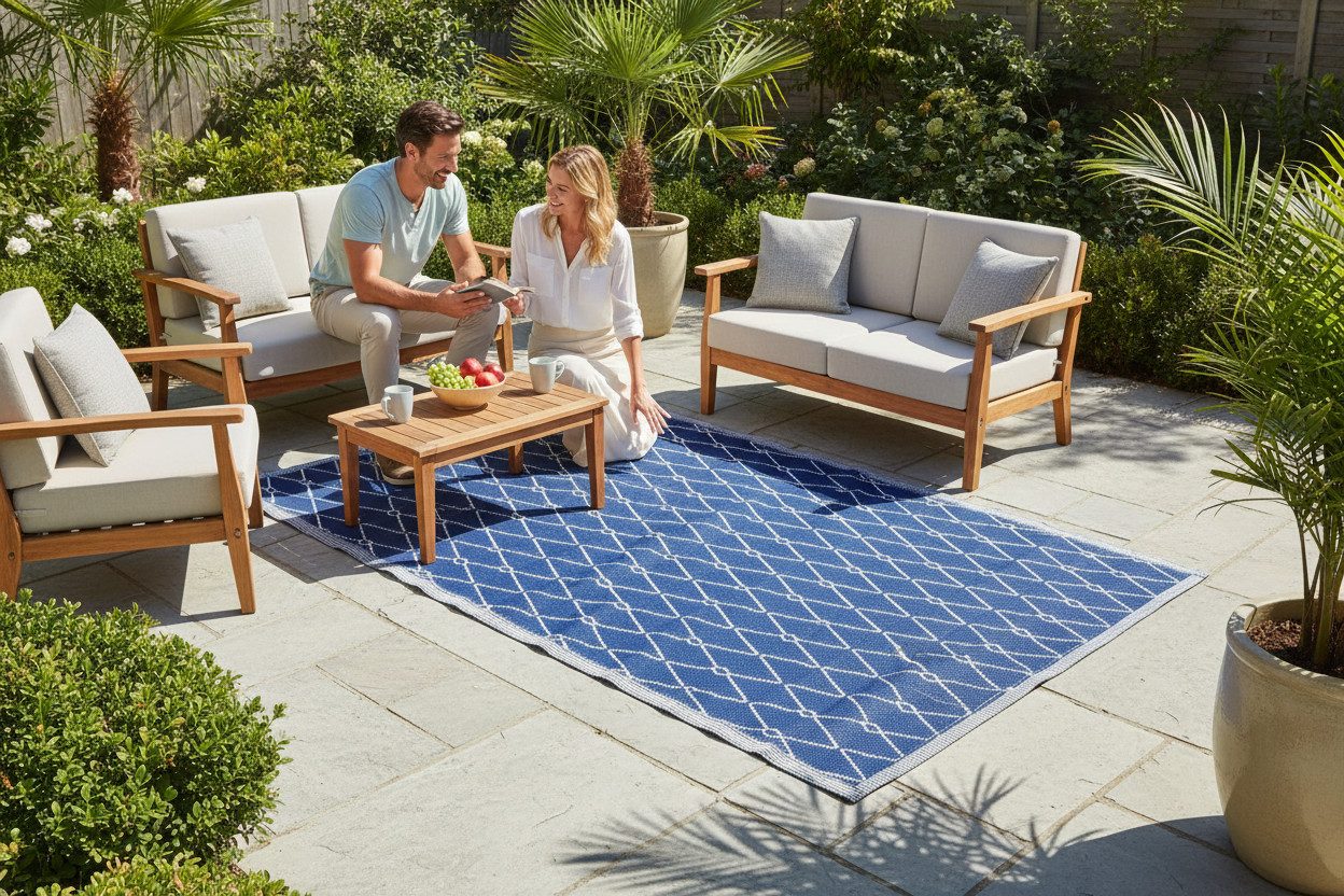 Dywan wykonany z plecionego polipropylenu – materiału stosowanego w dywanach outdoorowych ze względu na: