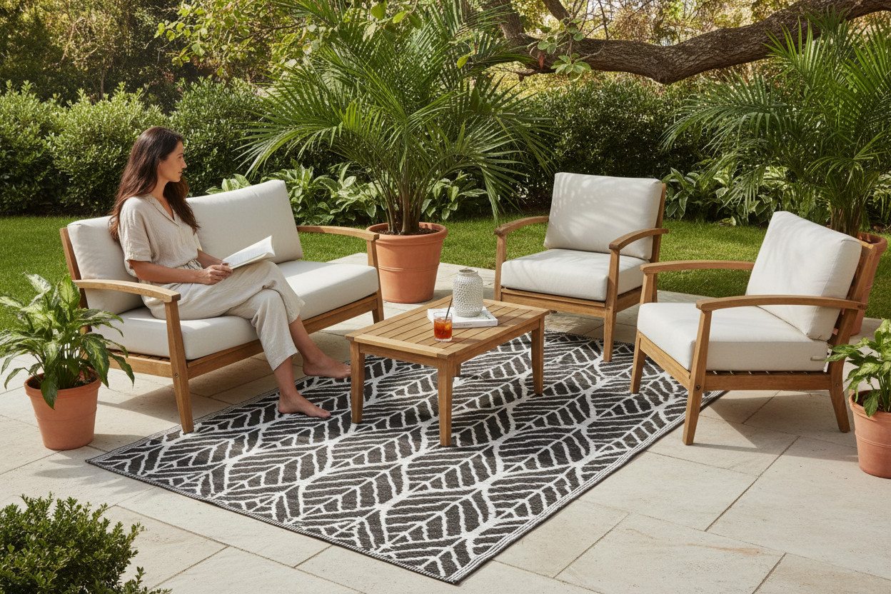dywan zewnętrzny, dywan na taras, dywan balkonowy, dywan ogrodowy, dywan brązowy, dywan liście, dywan plastikowy, outdoor rug, patio rug