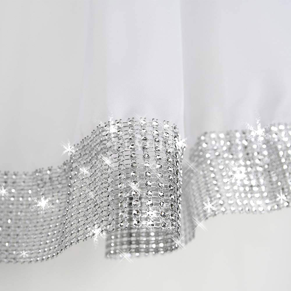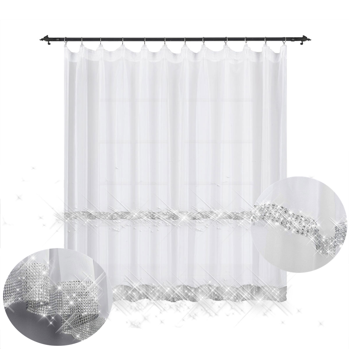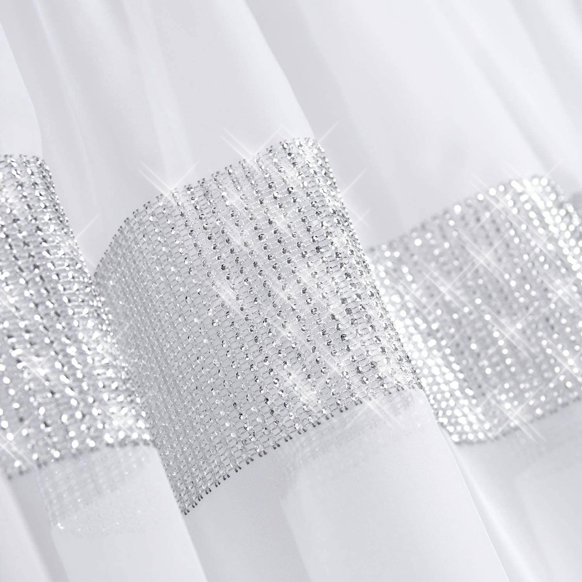 Firanka przepuszcza dość dużo światła, promienie słońca sprawią, że dekoracyjne cyrkonie będą pięknie błyszczeć i zawracać na siebie uwagę. Firana GALAXIA występuje w wymiarze 300x145cm, który sprawdzi się na wielu oknach. Ozdobne cyrkonie rozmieszczono w dwóch pasach, dzięki czemu delikatnie podkreśla atrakcyjność firany. Prosta firana jak GALAXIA z dodatkiem cyrkonii będzie pasować zarówno do salonu, jak i sypialni.