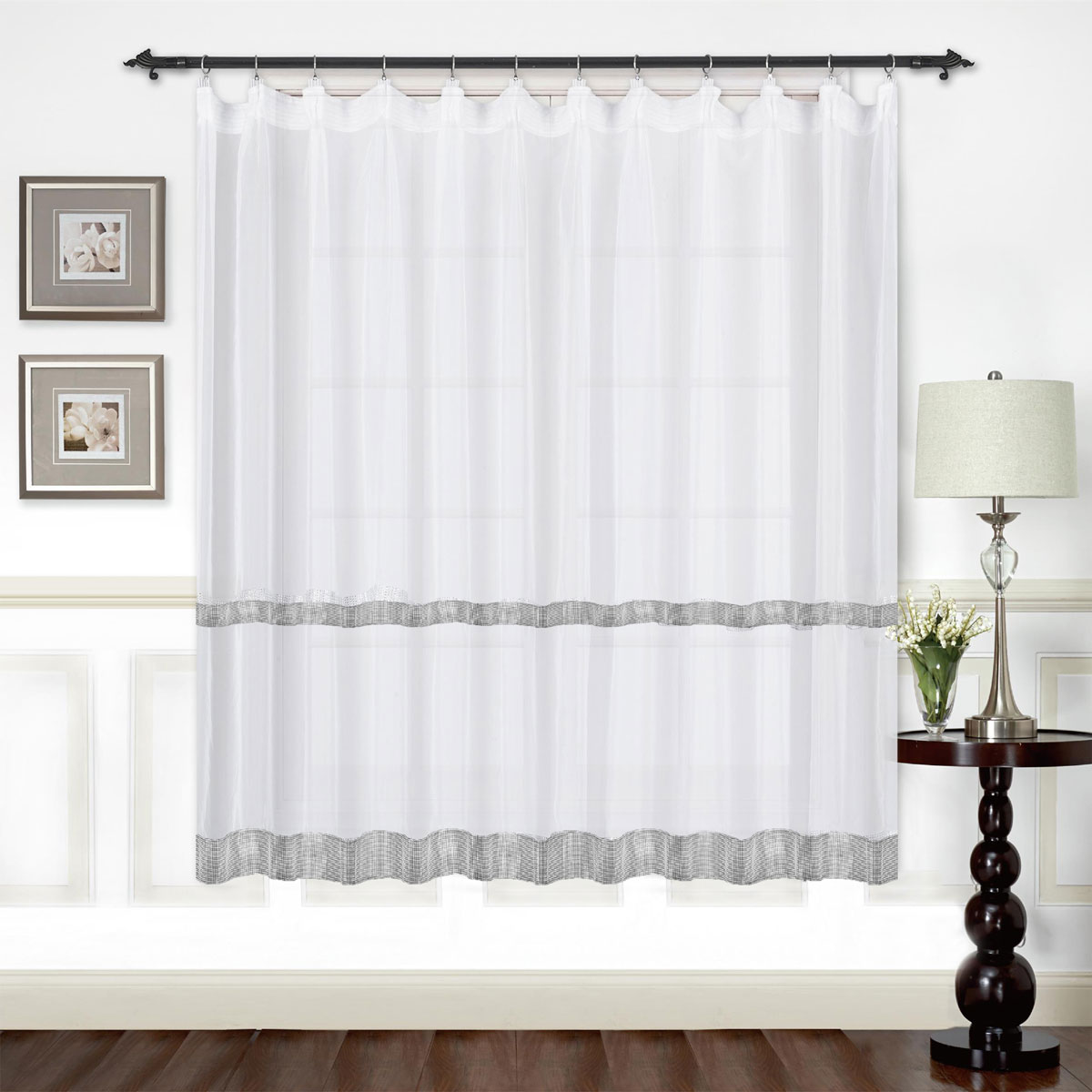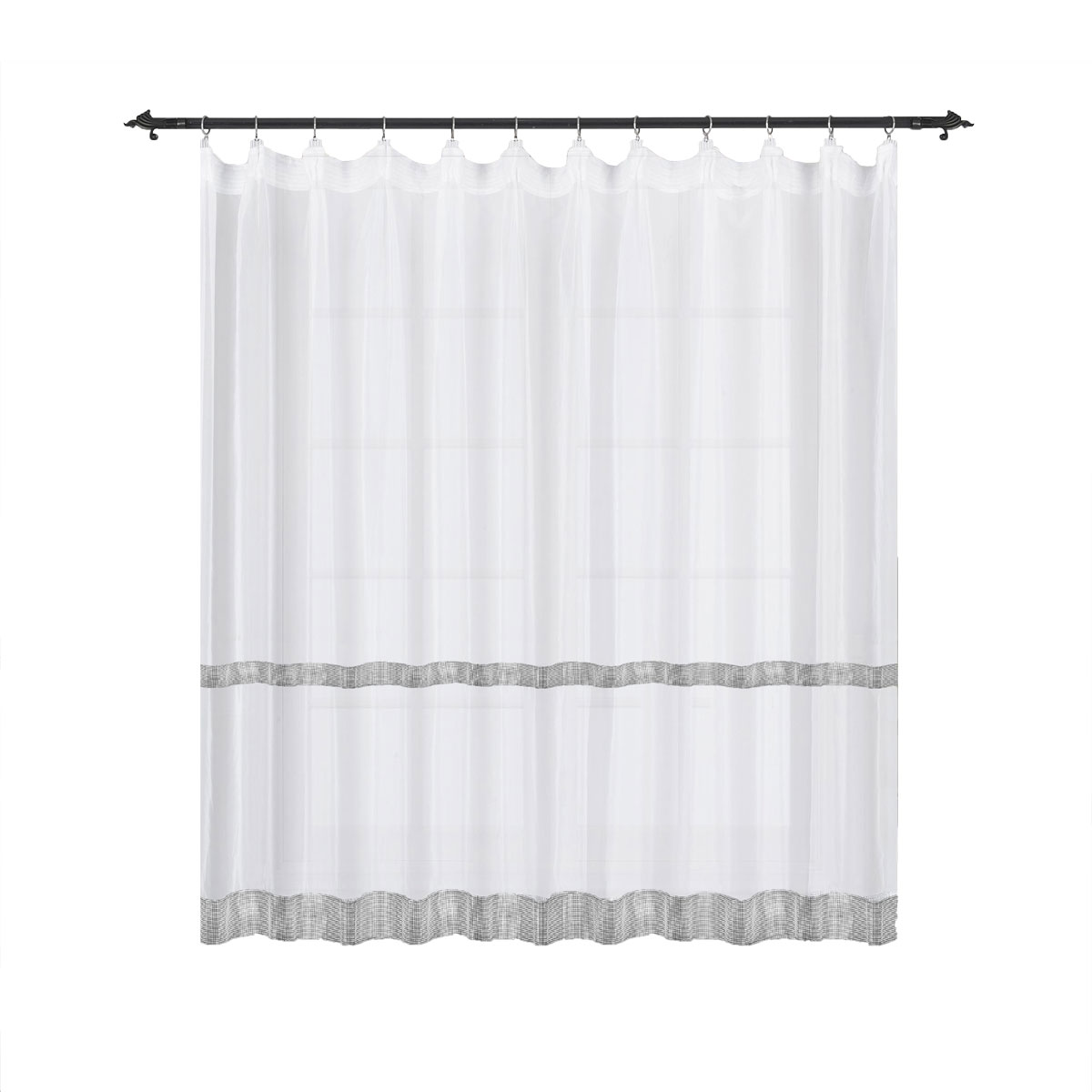 Delikatna i zwiewna firana uszyta z woalu na taśmie marszczącej.