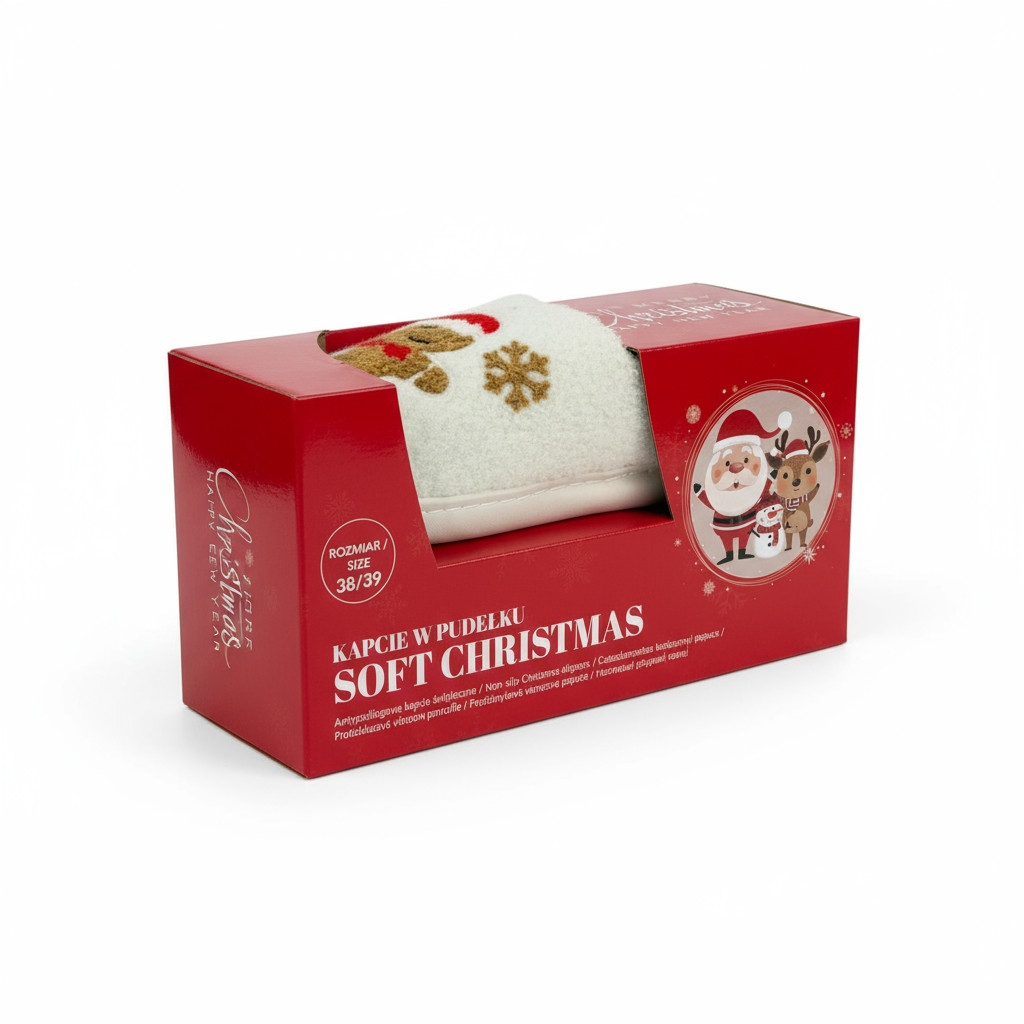 Kapcie domowe w pudełku Soft Christmas 40/41 Krem