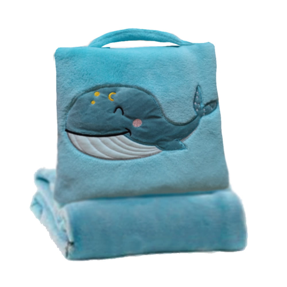 Koc 2w1 MOOKY flanela Wieloryb 75x100 cm Niebieski