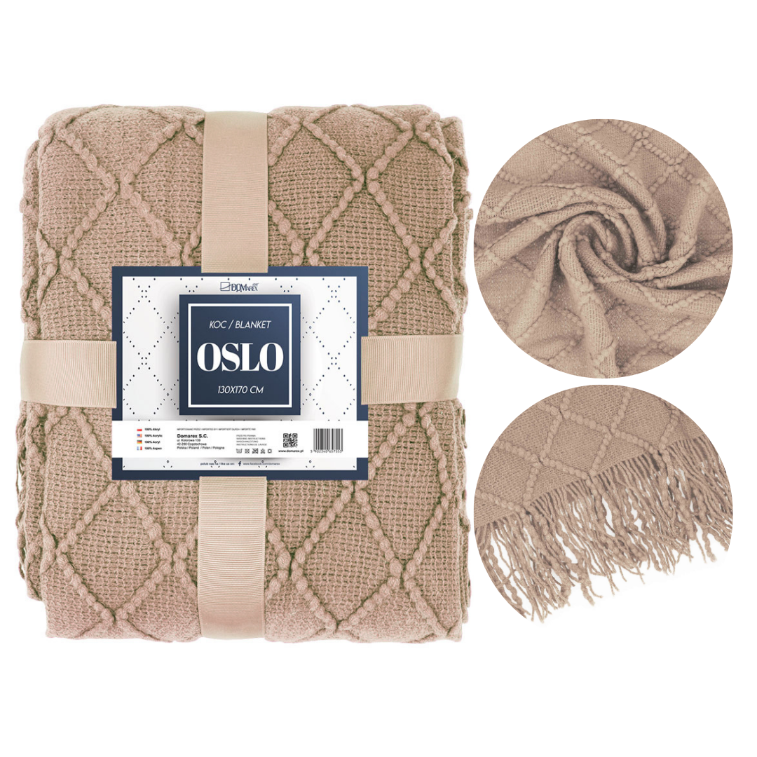 Koc Akrylowy OSLO knitted frędzle 130x170 Beż