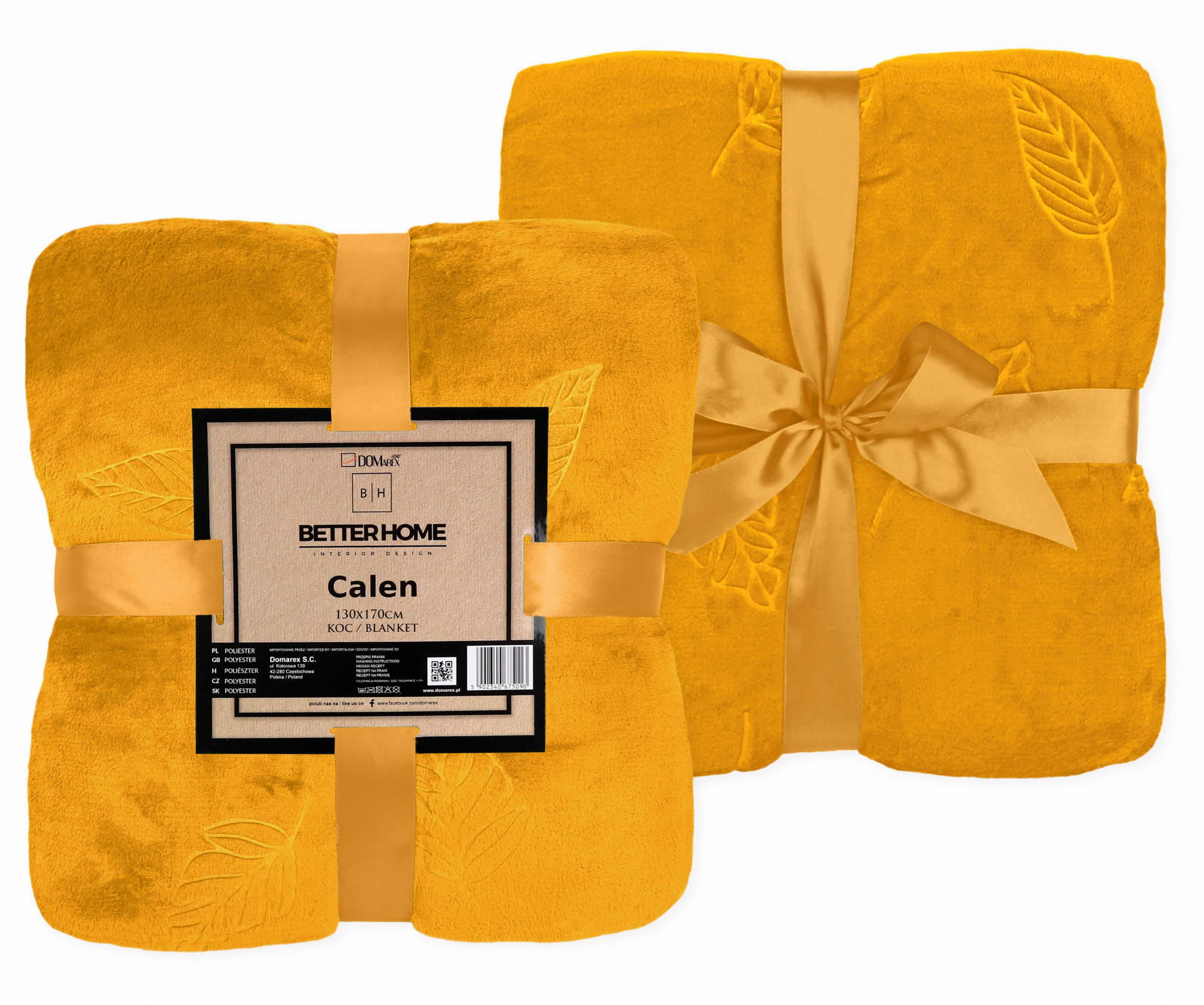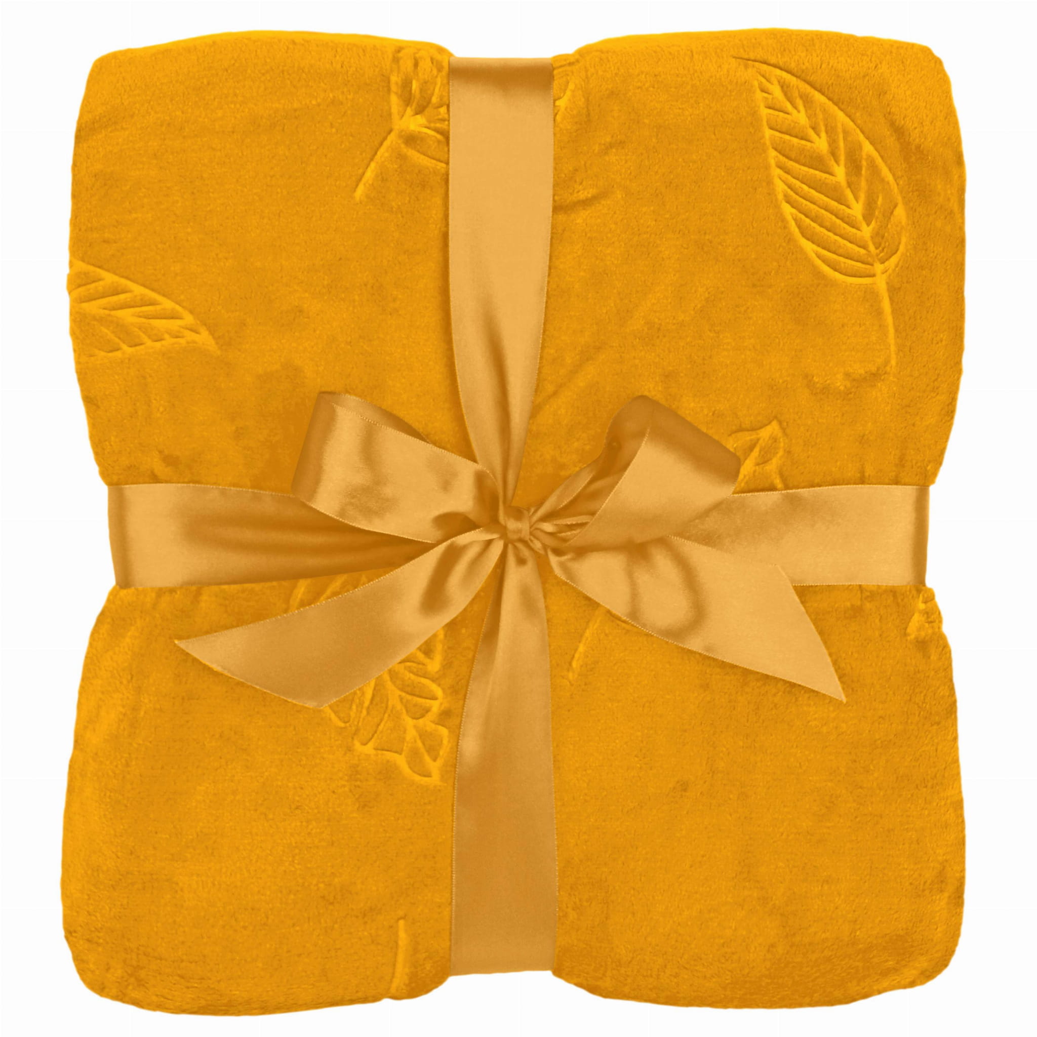 Koc CALEN wytłaczany Liść flanela 130x170 cm Złoty