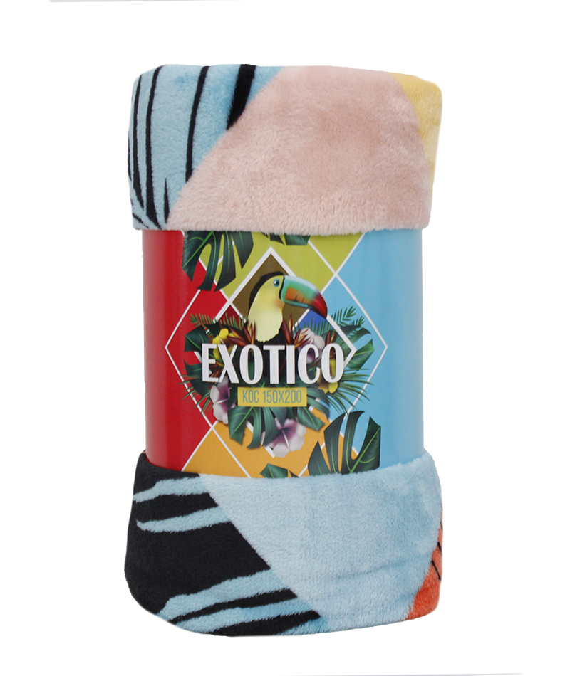 Poznaj świetny pomysł na designerski, miękki i przyjemny w dotyku drukowany KOC z kolekcji EXOTICO, która została zaprojektowana według projektu grupy projektantów firmy Domarex.