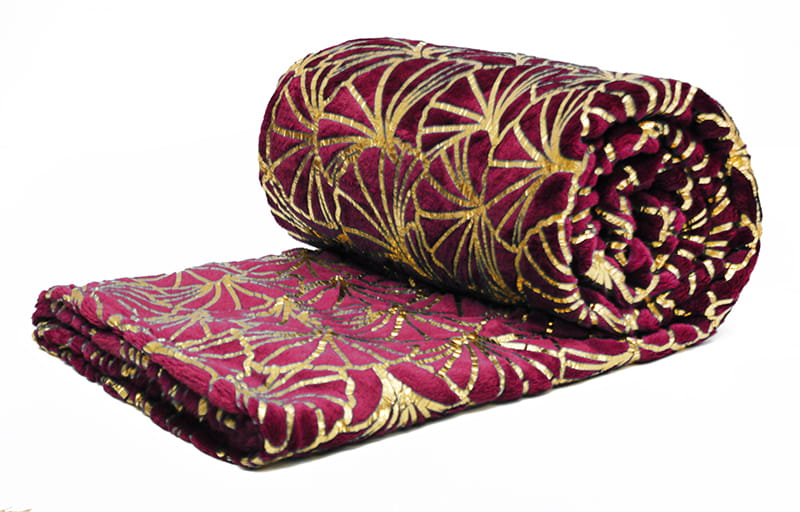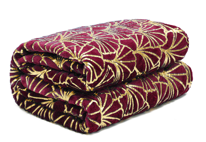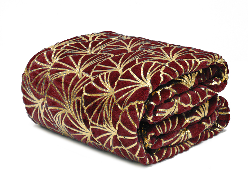 Koc GINKGO Gold mikroflanela 150x200 Bordo + Złoty