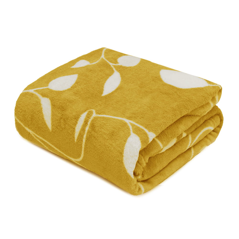 Koc LUC liście 200x220 cm Żółty / Musztarda