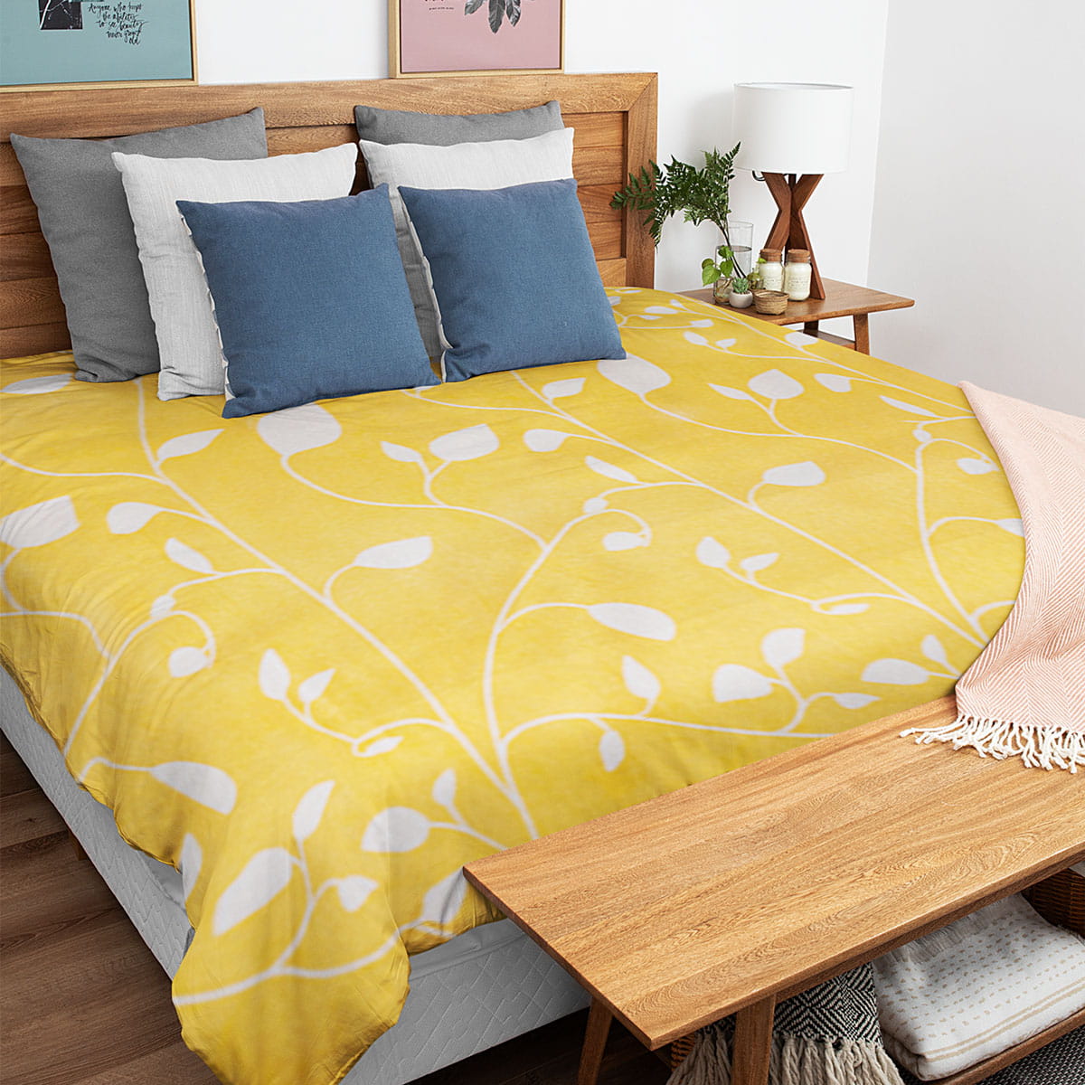 - Stylowy design: Motyw roślinny w połączeniu z żywym, żółtym kolorem to doskonałe rozwiązanie dla osób, które uwielbiają oryginalne dodatki. Minimalistyczny, ale nowoczesny wzór idealnie wpisuje się w różne style aranżacji wnętrz.