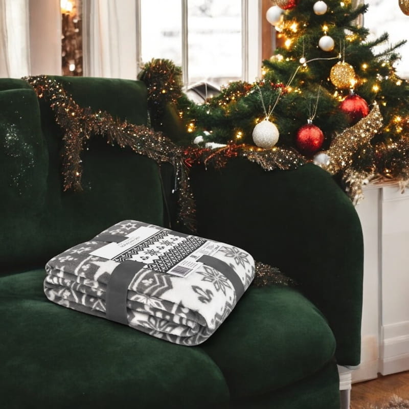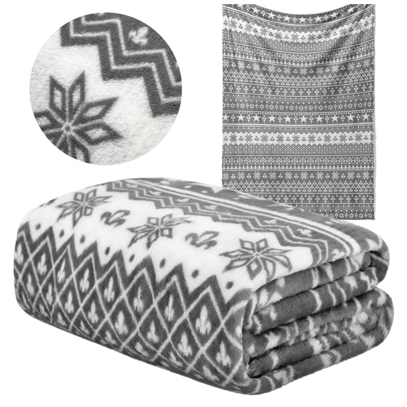 Skandynawski design: Urokliwy biało-szary wzór skandynawski nadaje kocowi nowoczesny charakter, który wpasuje się w różne aranżacje, od minimalistycznych po bardziej klasyczne.