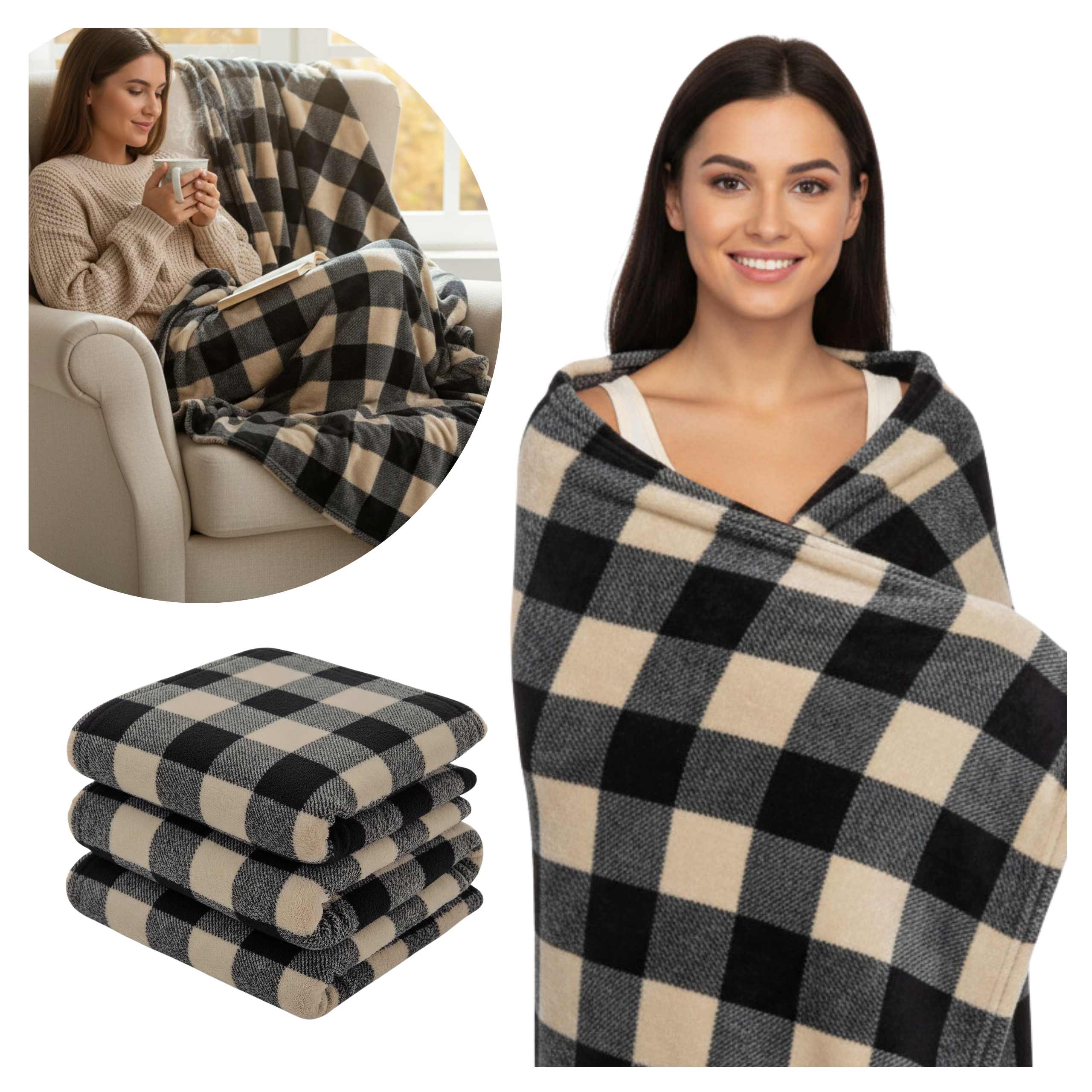 Koc RETRO Check KRATA 130x170 cm Beż Czarny