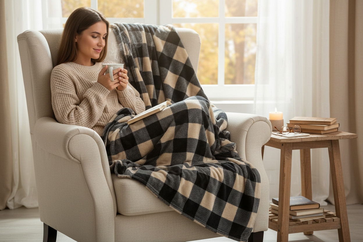 Lekki i praktyczny – idealny do relaksu na kanapie, jako narzuta na fotel lub łóżko.