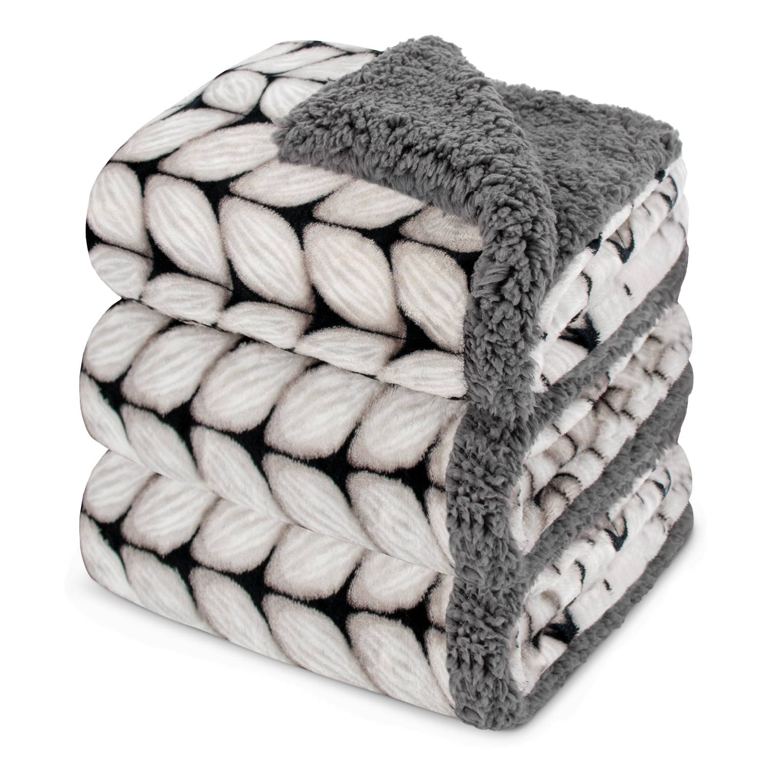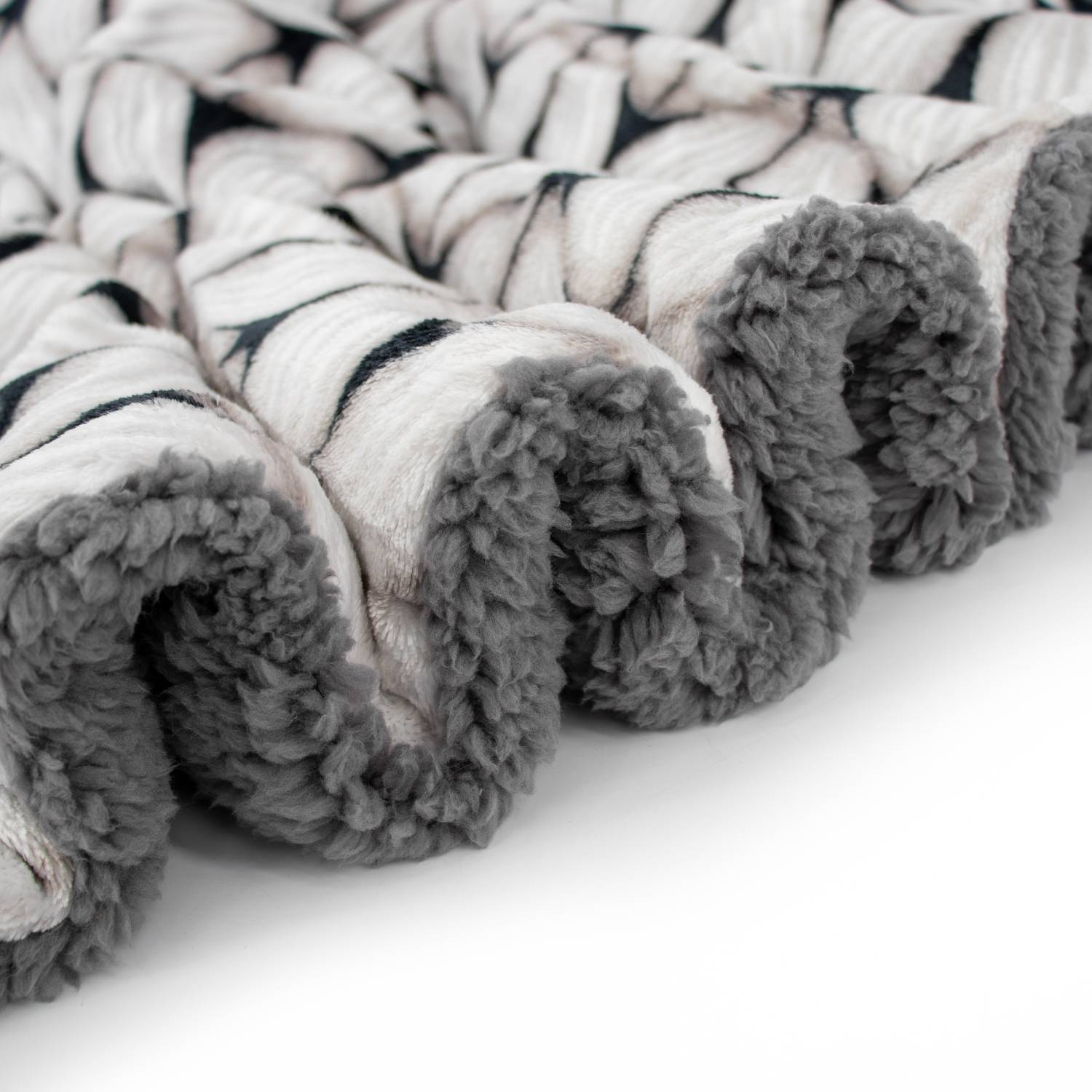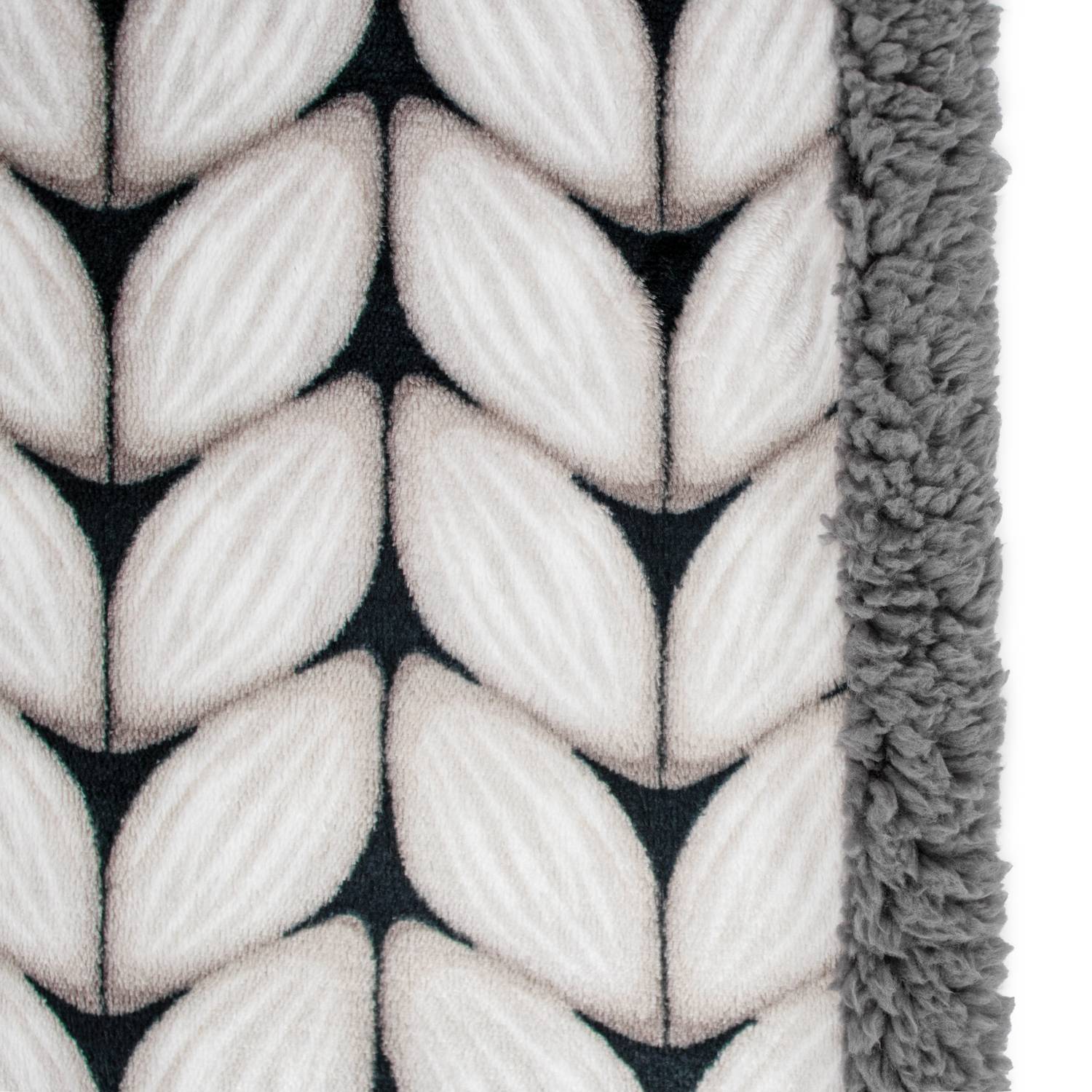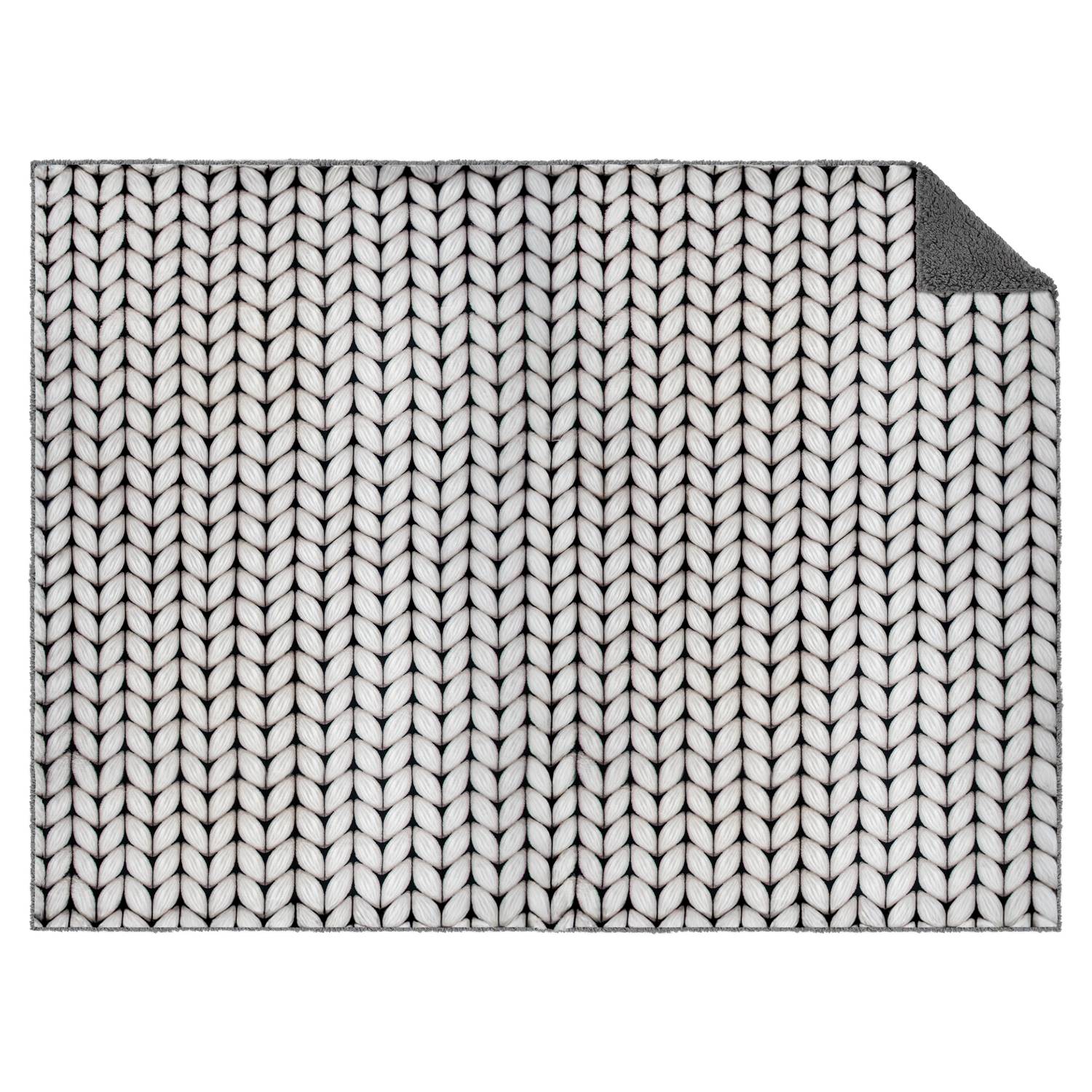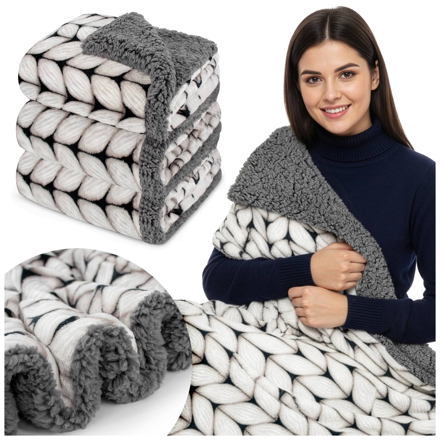 mikrofibra o strukturze swetra, druga to puszysta, biała sherpa, która otuli Cię przyjemnym