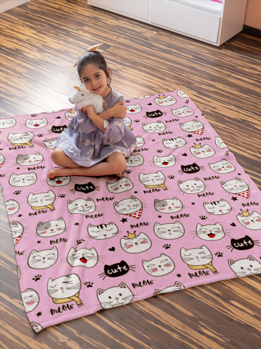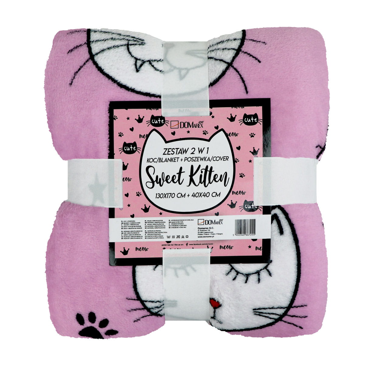 Komplet Koc 130x170 + Poszewka 40x40 SWEET KITTEN