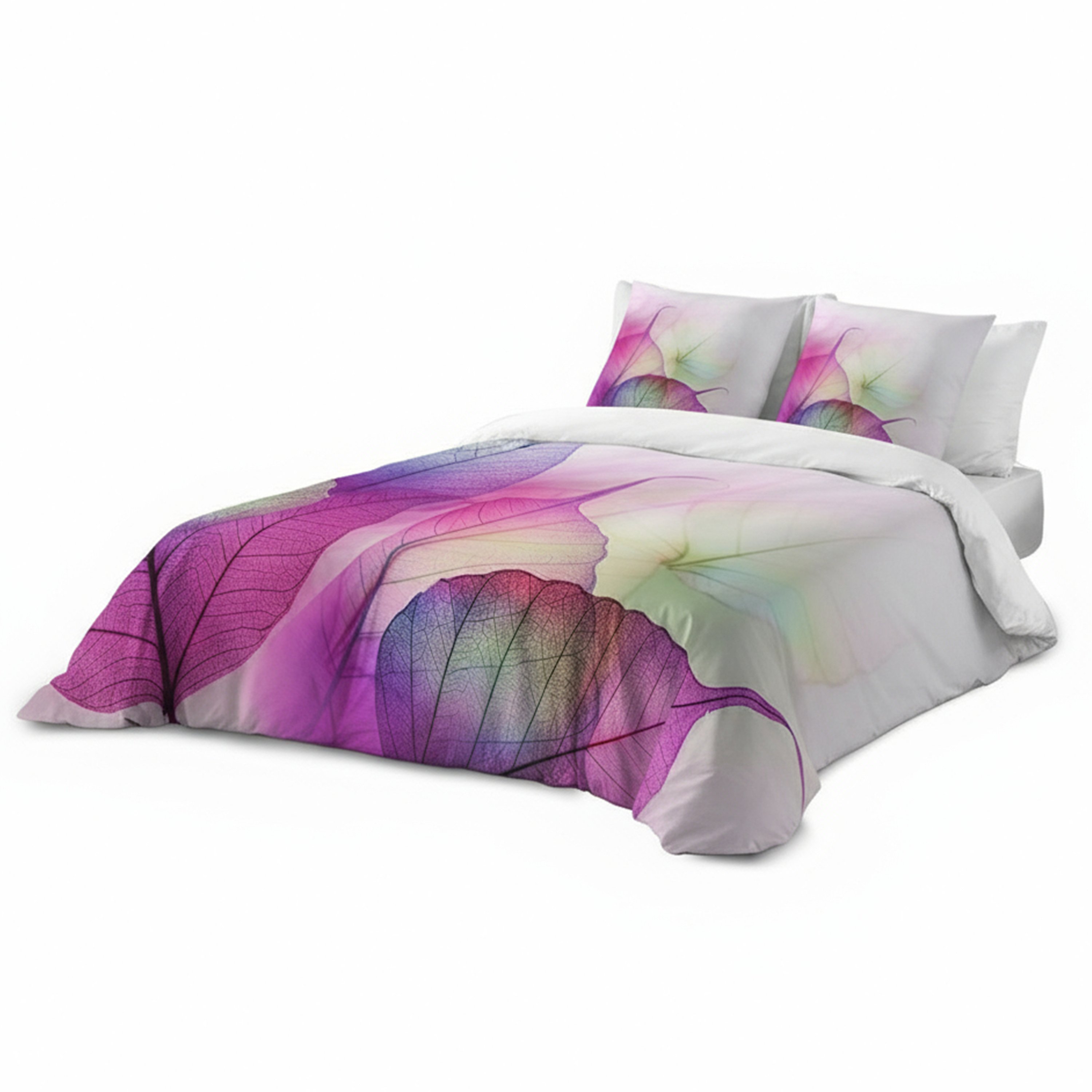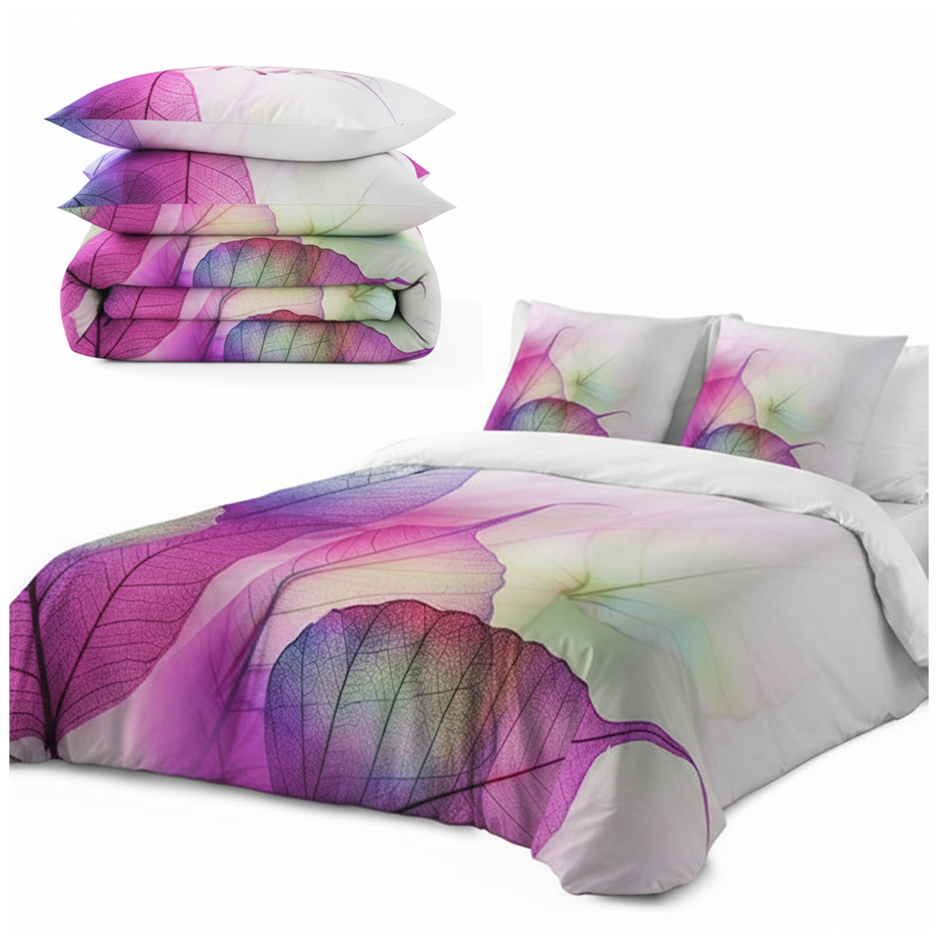 Pościel 160x200 + 2 Poszewki 70x80 Satyna Bawełniana – Wzór Kolorowe liście