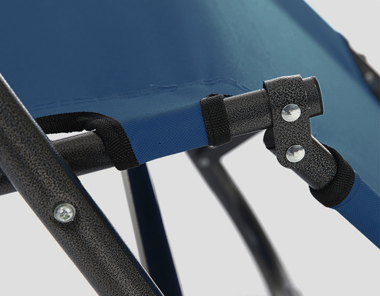 Leżak wytrzymujący obciążenie do 120 kg na solidnej konstrukcji. Leżak idealny na wypoczynek, rozkładający się, odpowiedni dla osób wysokich. Stelaż leżaka wykonany z metalu pokrytego epoksydowo, co chroni przez rdzą i zarysowaniami.