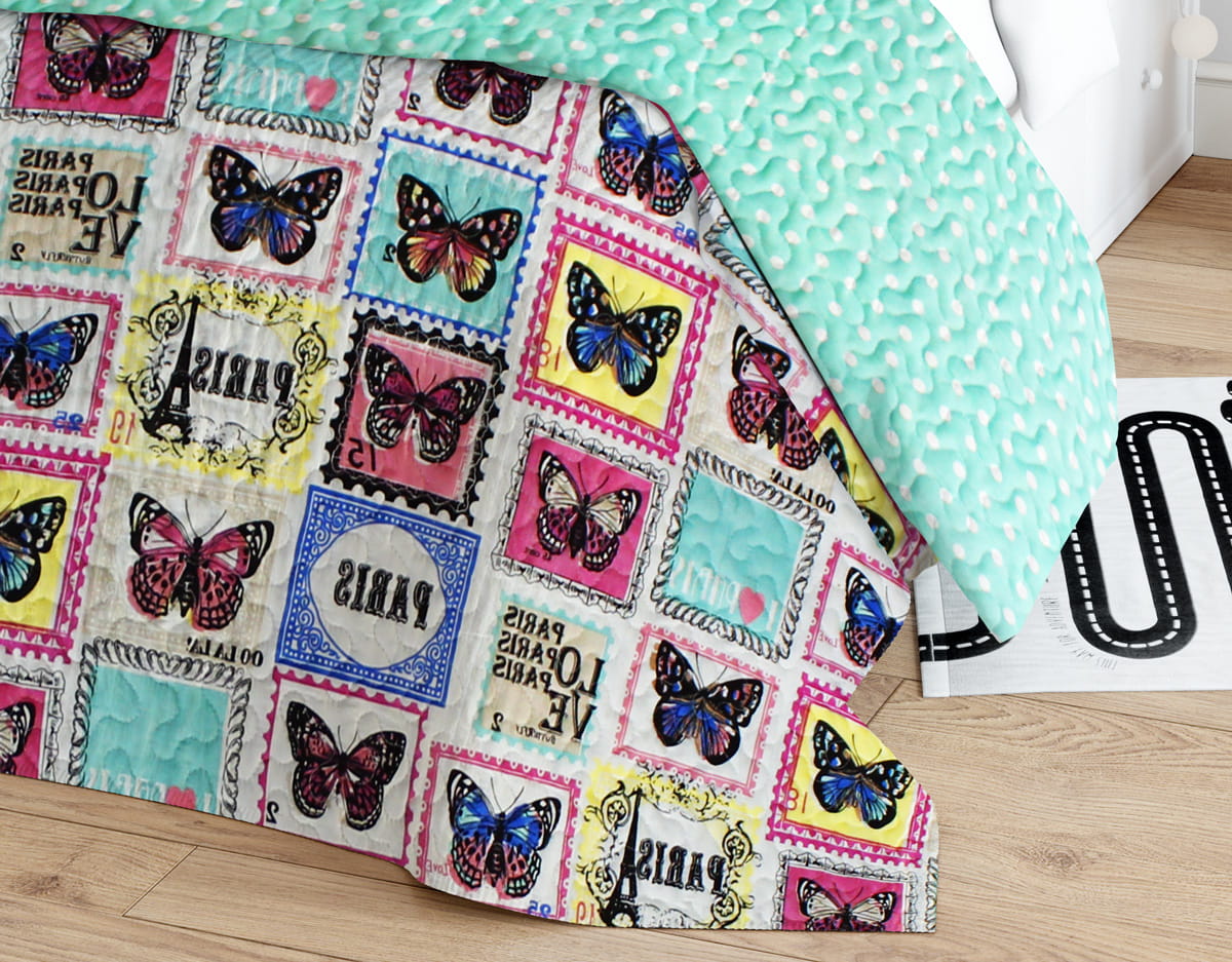 Dwuwarstwowa, gruba, solidnie wykonana narzuta dziecięca w rozmiarze 200x220 wykonana z matowego materiału przypominającego bawełnę składającego się ze 100% poliestru, gładka i przyjemna w dotyku NIE ŚLIZGA SIĘ. Posiada oryginalne pikowanie tworzone poprzez metodę zgrzewania HOT PRESS.