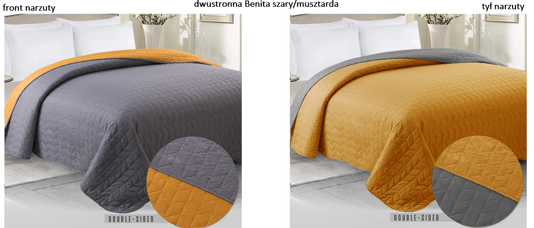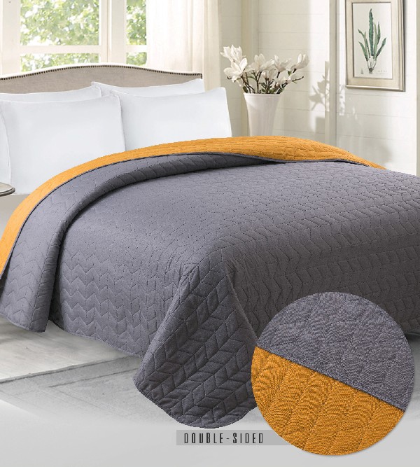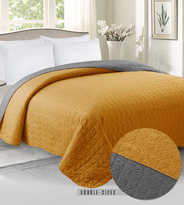Narzuta dwustronna BENITA 200x220 Szary/Musztarda