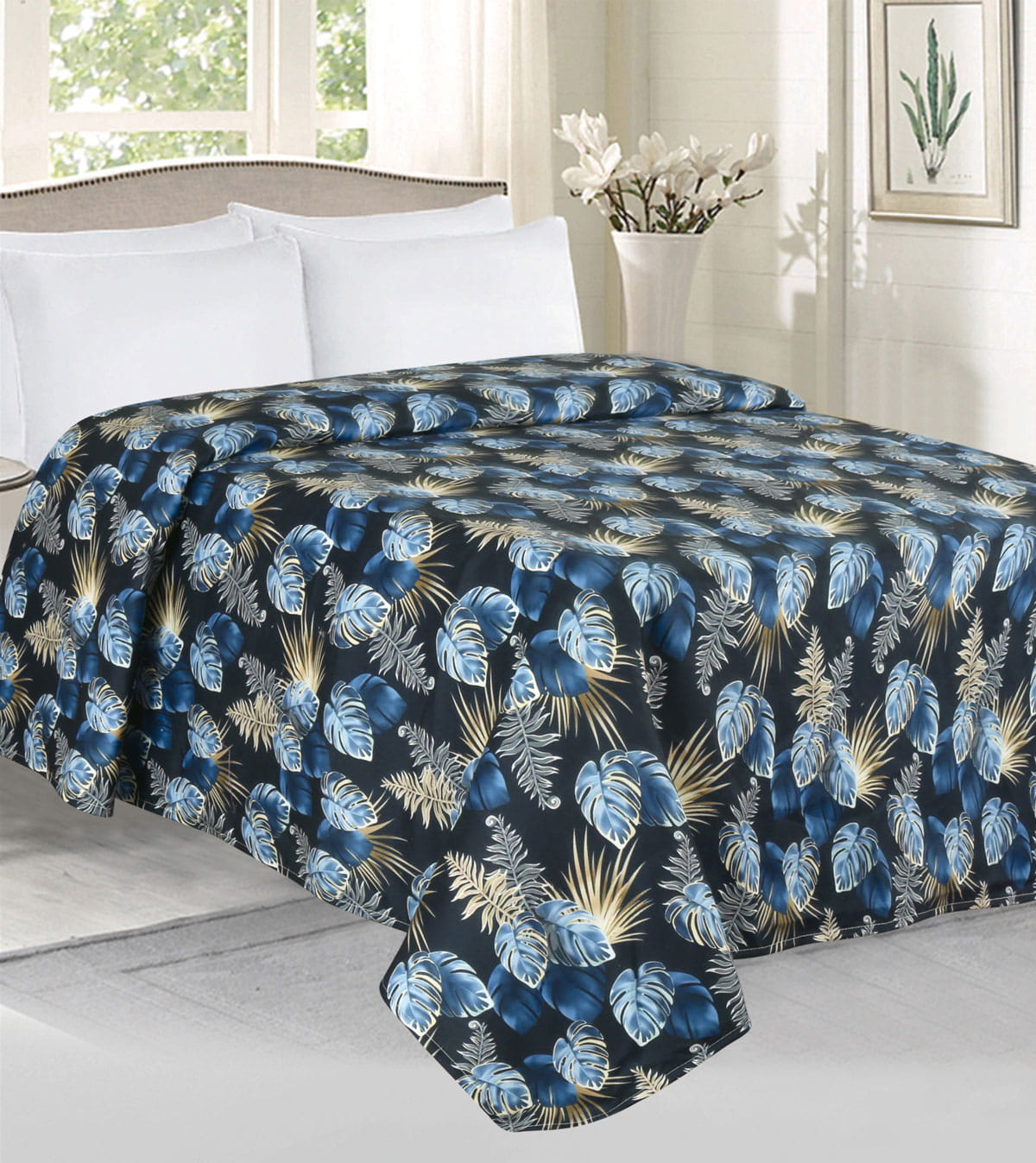 Narzuta dwustronna CAVIAR Liście 200x220 Czarny