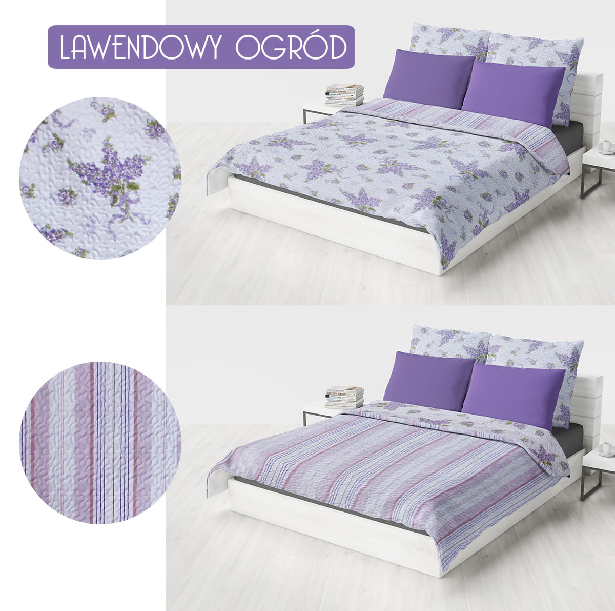 Narzuta dwustronna LAVENDER GARDEN 200x220 lawenda