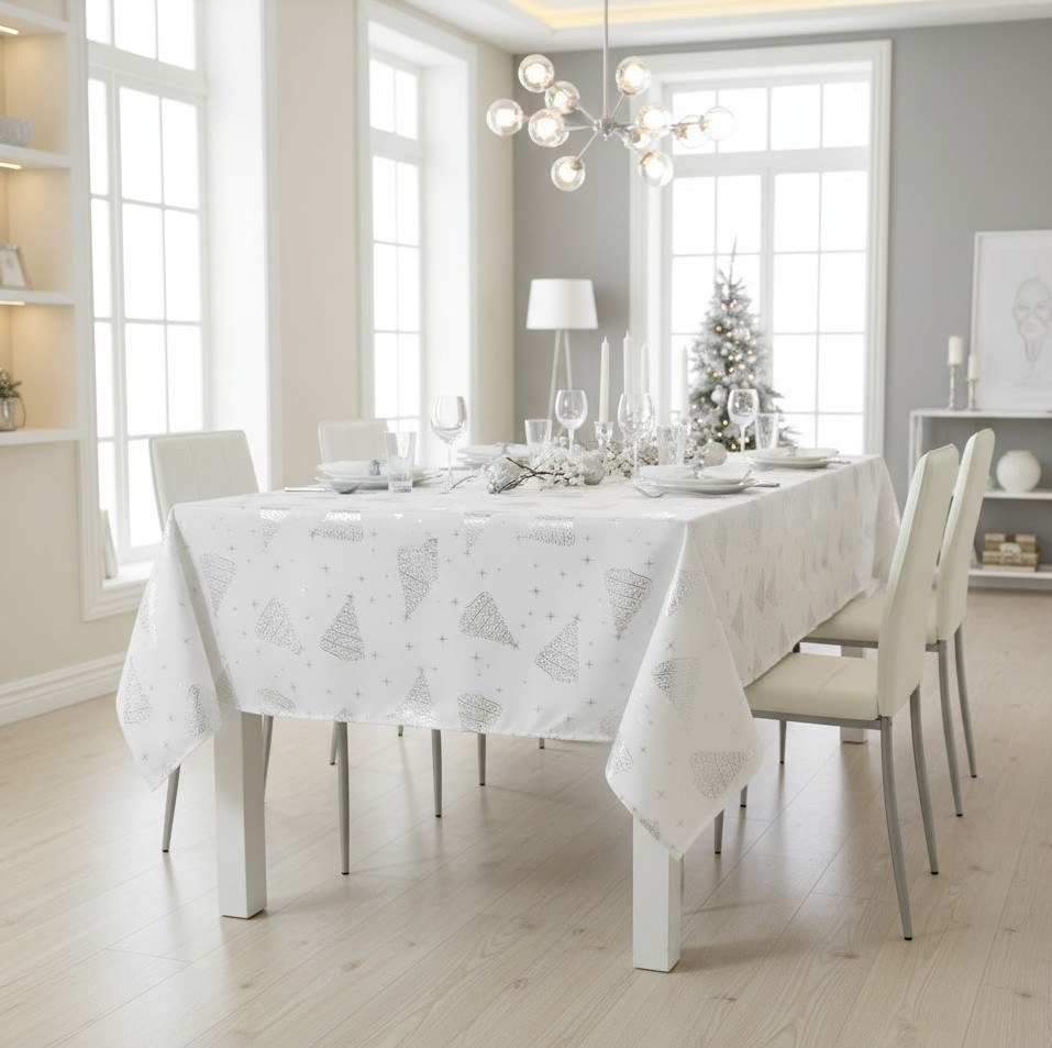 Subtelna kolorystyka i uroczy motyw choinki wpisują się zarówno w tradycyjne, jak i bardziej nowoczesne aranżacje wnętrz, pozwalając swobodnie dobierać dodatki i zastawę. Obrus MerryChoinka to modny i funkcjonalny akcent, który odmieni Twoją przestrzeń i podkreśli klimat Bożego Narodzenia.