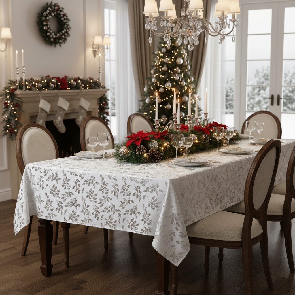 Motyw świąteczny dodaje uroku i radości, sprawiając, że stół staję się centralnym punktem świątecznych przyjęć i spotkań rodzinnych.
