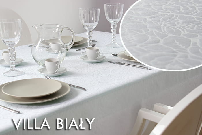 Dekoracyjny obrus z kolekcji VILLA powstał z myślą o osobach ceniących najmodniejsze wzornictwo. Będzie idealny na stół w salonie czy kuchni. Obrus polecany osobom śledzącym najnowsze trendy designu.
