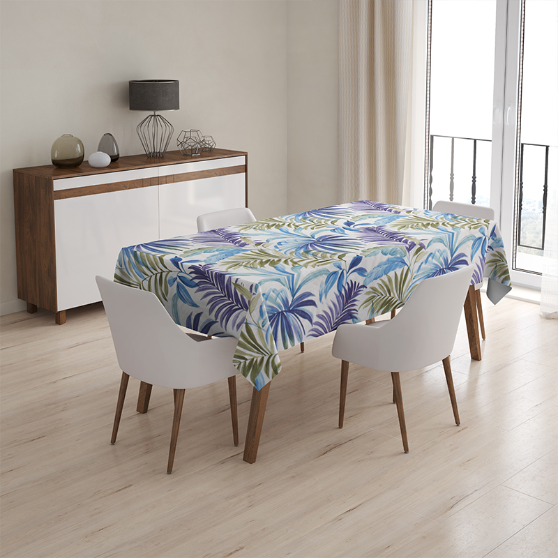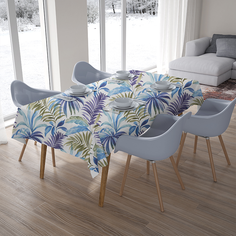 Kolekcję Fenix Azul polecamy osobom śledzącym najnowsze trendy designu, preferujące styl urban jungle/tropical botanic. W ofercie z tej tkaniny dostępne są również obrusy i bieżniki, a także poszewki i poduszki w różnych rozmiarach. Dzięki temu możesz utworzyć komplementarny zestaw do swojego wnętrza.