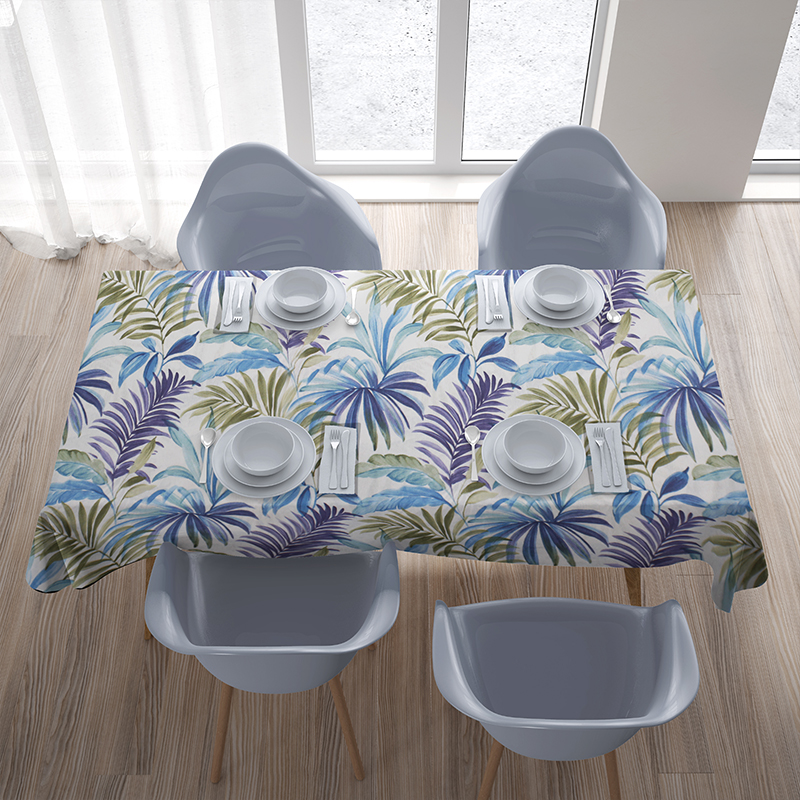 Kolekcję Fenix Azul polecamy osobom śledzącym najnowsze trendy designu, preferujące styl urban jungle/tropical botanic. W ofercie z tej tkaniny dostępne są również obrusy i bieżniki, a także poszewki i poduszki w różnych rozmiarach. Dzięki temu możesz utworzyć komplementarny zestaw do swojego wnętrza.
