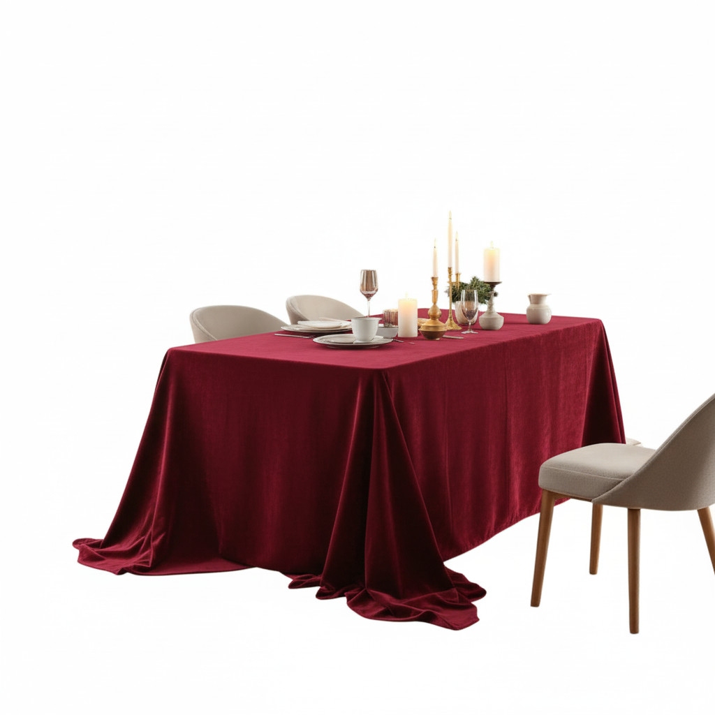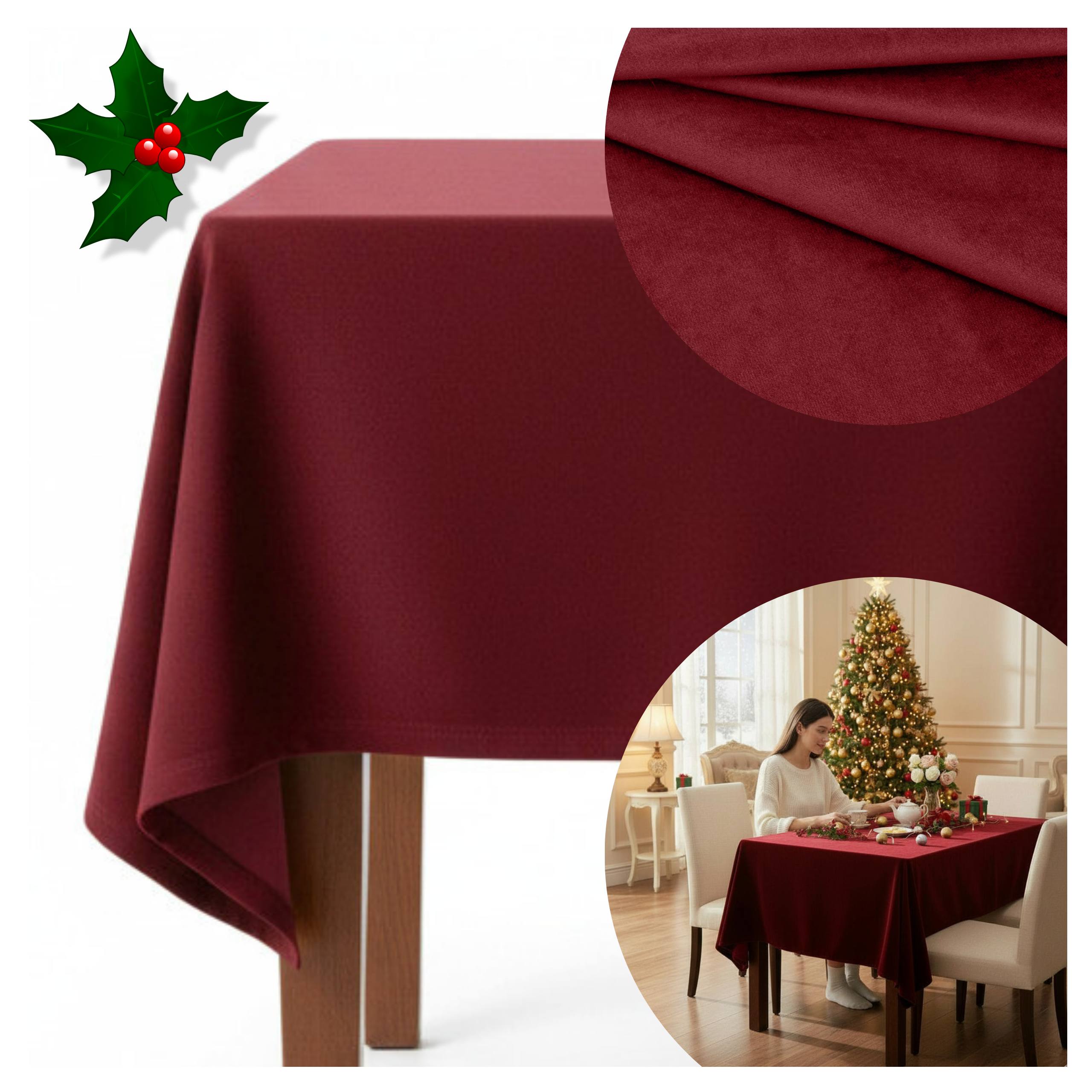 Odkryj wyjątkowy obrus velvetowy w kolorze głębokiego bordo, który doda Twojemu wnętrzu elegancji i luksusowego charakteru. Wykonany z miękkiego, aksamitnego velvetu, zachwyca subtelnym połyskiem i pięknym układem materiału, dzięki czemu świetnie sprawdzi się na co dzień, podczas świąt, rodzinnych uroczystości czy spotkań przy stole.