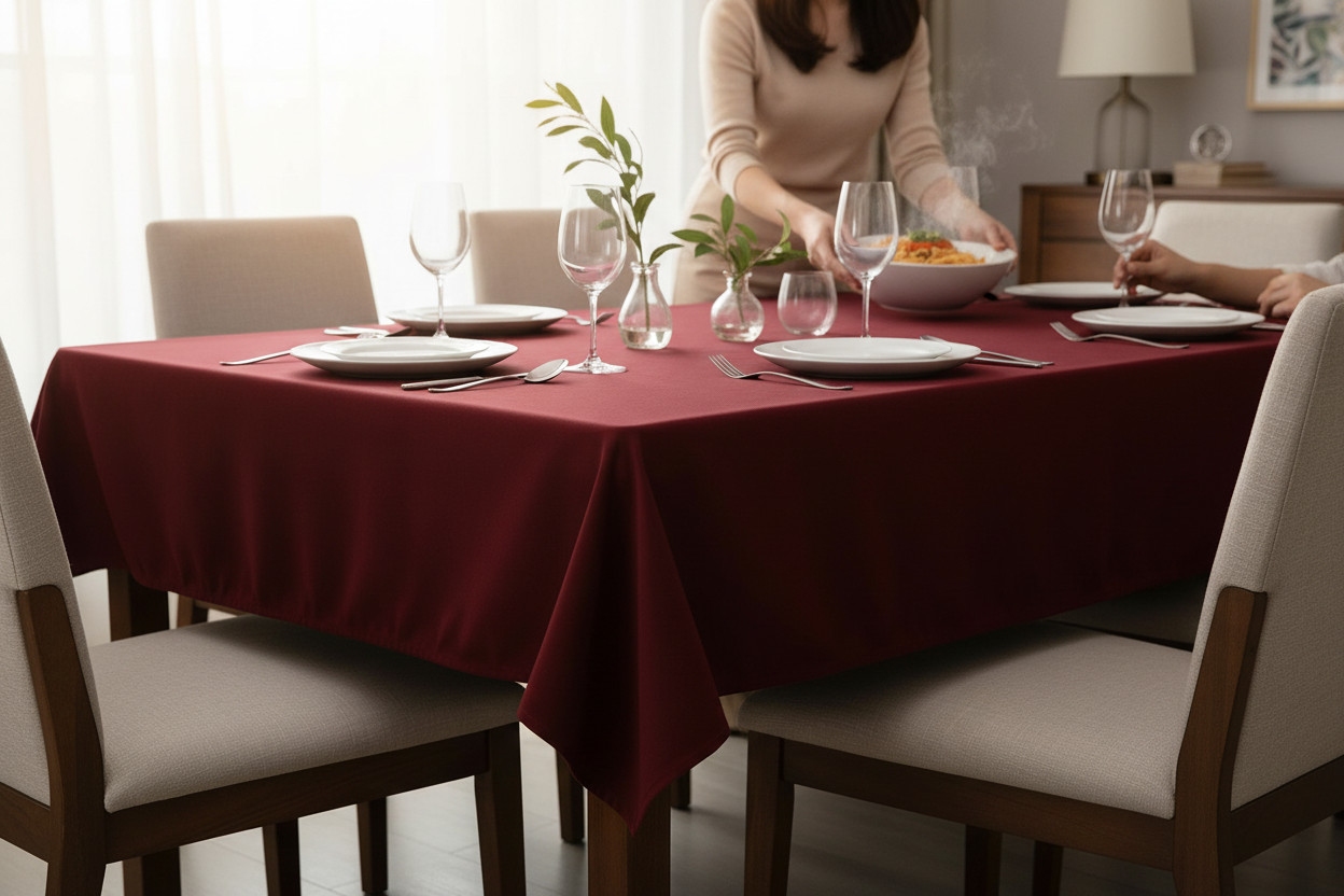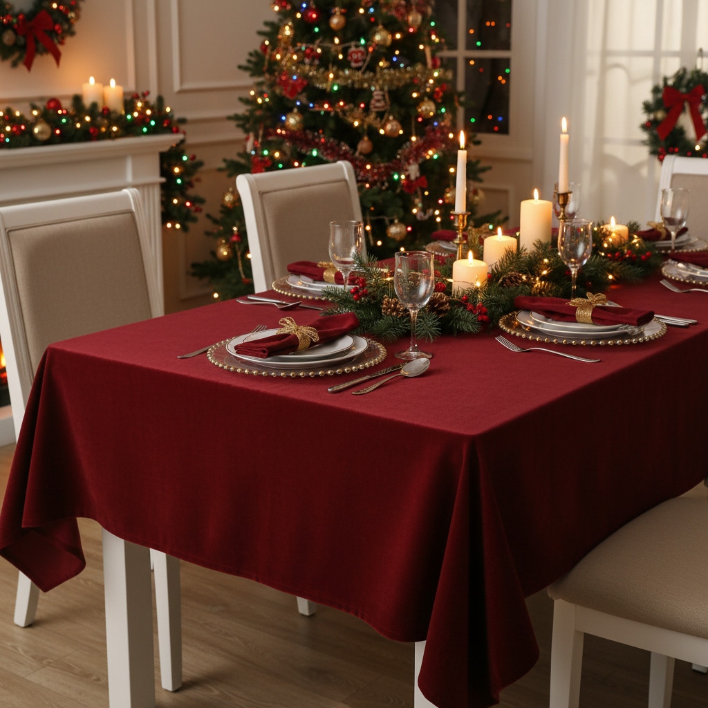 To obrus, który łączy w sobie styl glamour, świąteczne nastroje i wysmakowaną klasykę. Bordo to kolor pełen ciepła, elegancji i wyjątkowego klimatu – idealny na sezon jesienno–zimowy oraz dekoracje świąteczne.