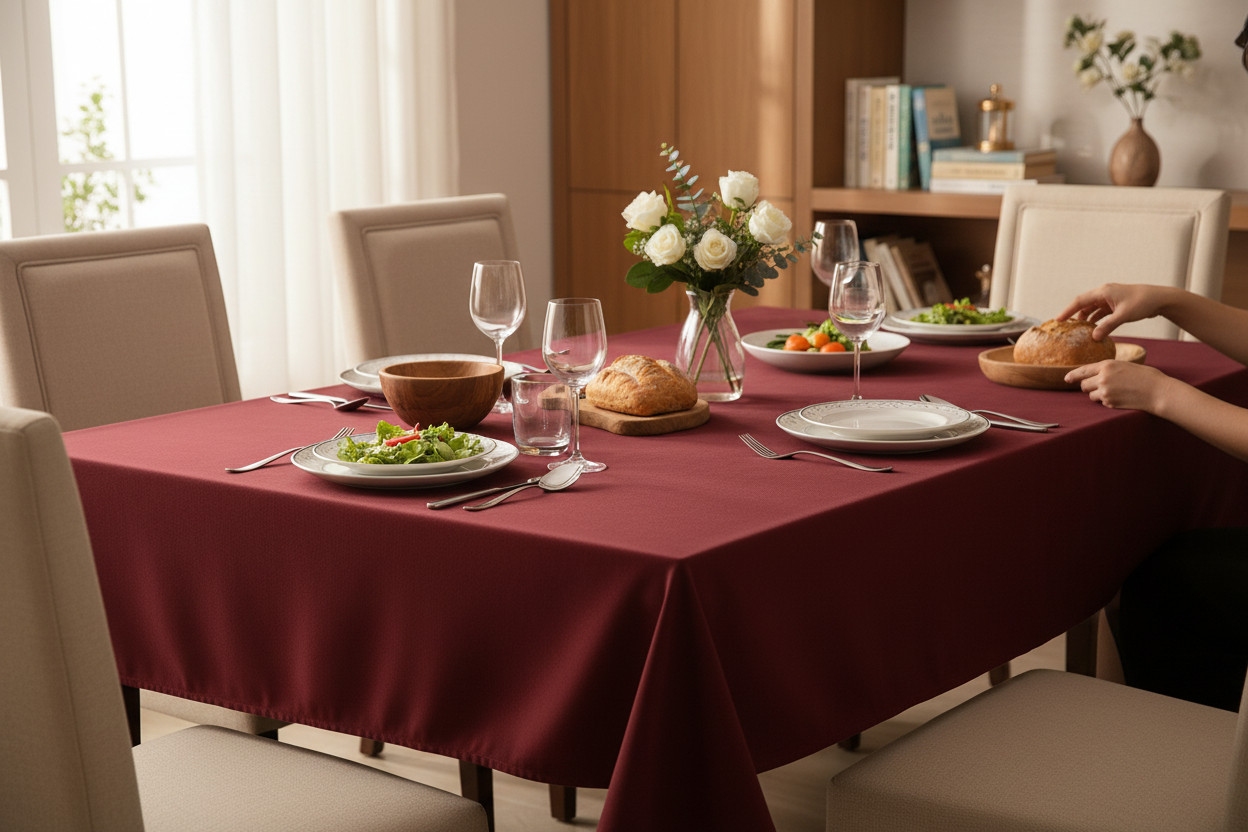 To obrus, który łączy w sobie styl glamour, świąteczne nastroje i wysmakowaną klasykę. Bordo to kolor pełen ciepła, elegancji i wyjątkowego klimatu – idealny na sezon jesienno–zimowy oraz dekoracje świąteczne.