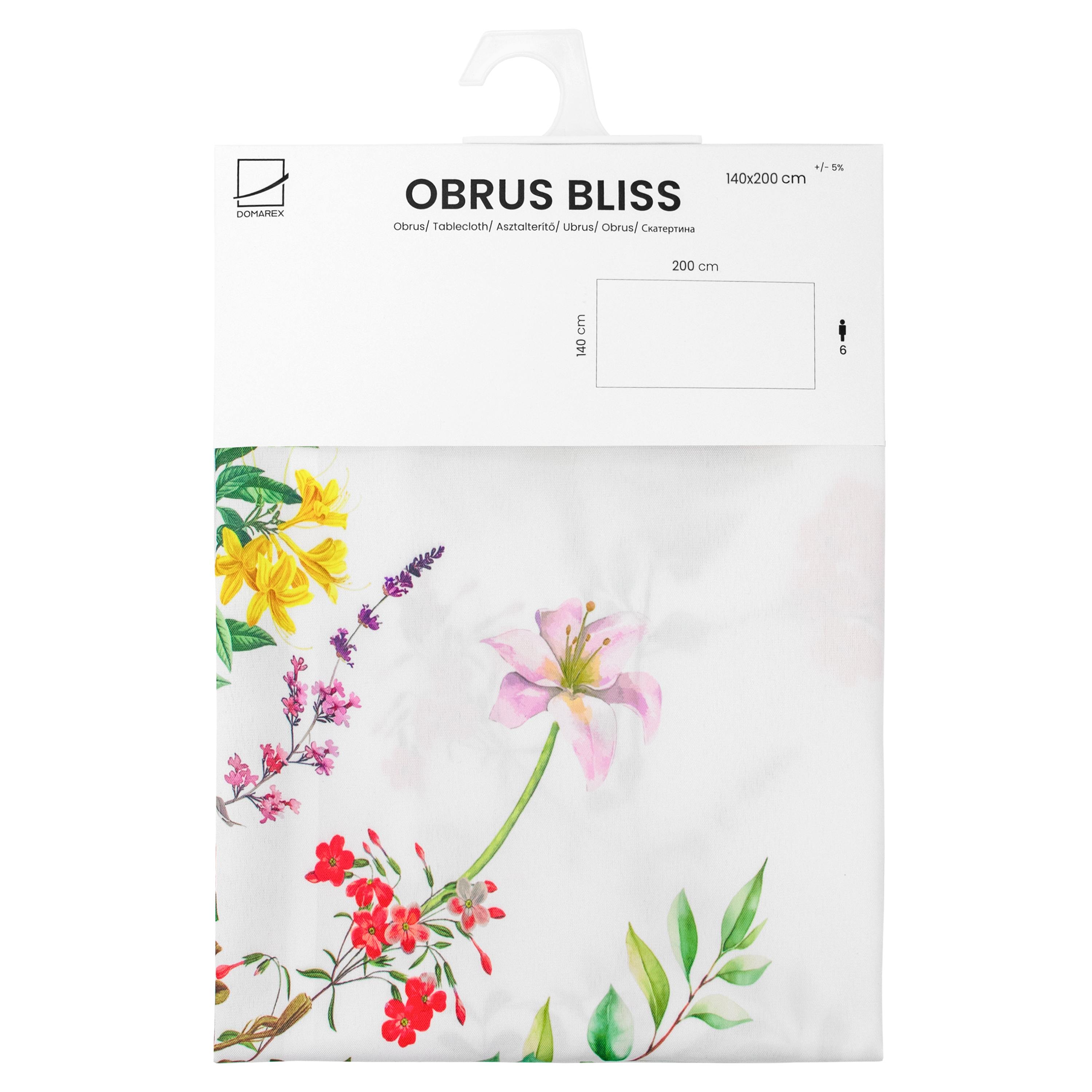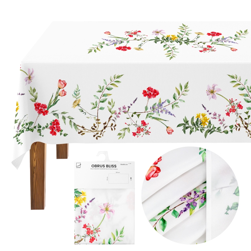 OBRUS DOMAREX BLISS 140x200 cm – plamoodporny obrus w kwiaty, biały obrus dekoracyjny