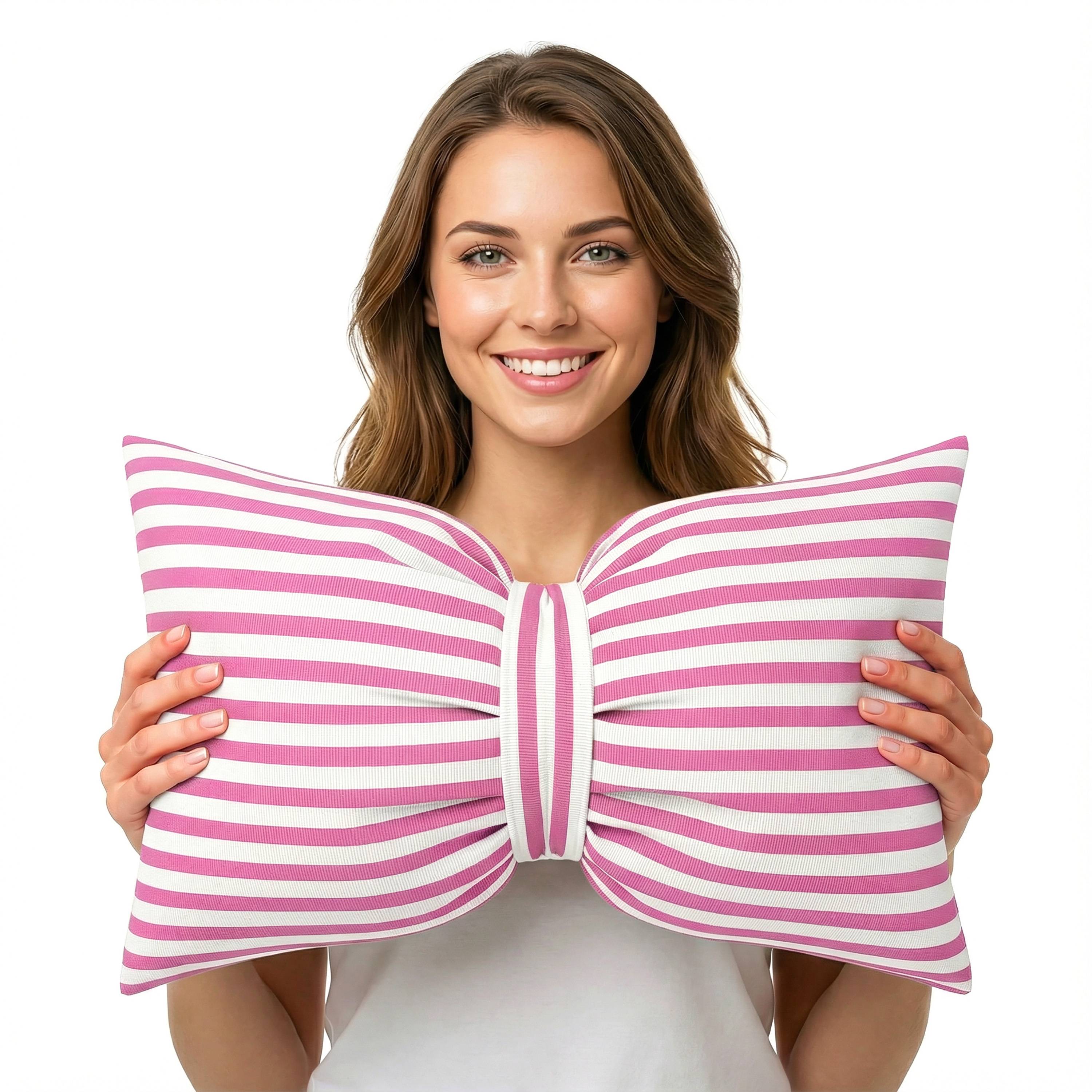 Poduszka Kokarda GLAM 30x50 Panama Róż paski