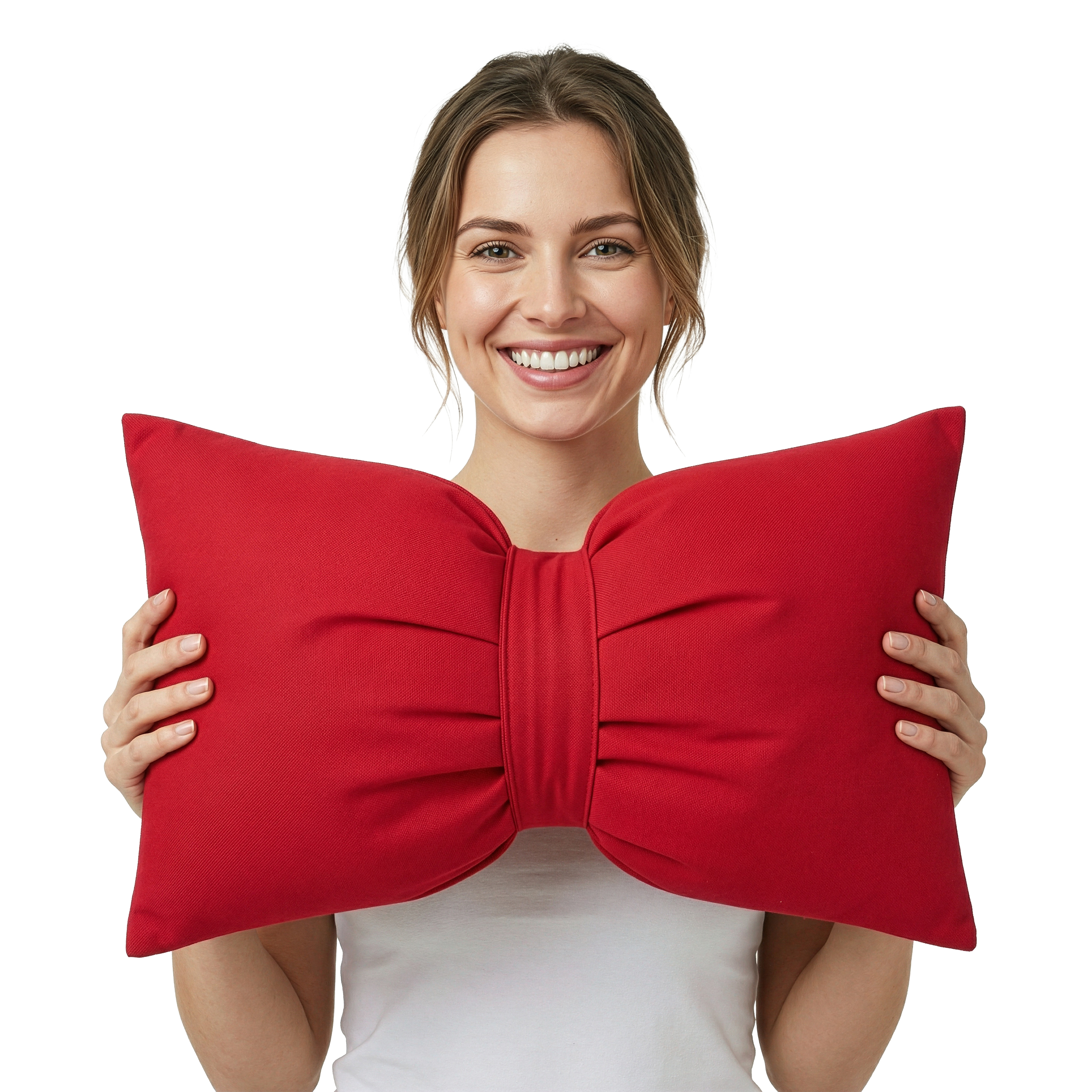 Dzięki unikatowemu kształtowi kokardy poduszka od razu przyciąga wzrok i wprowadza do wnętrza ciepły, przytulny klimat – bez dużych zmian aranżacyjnych.