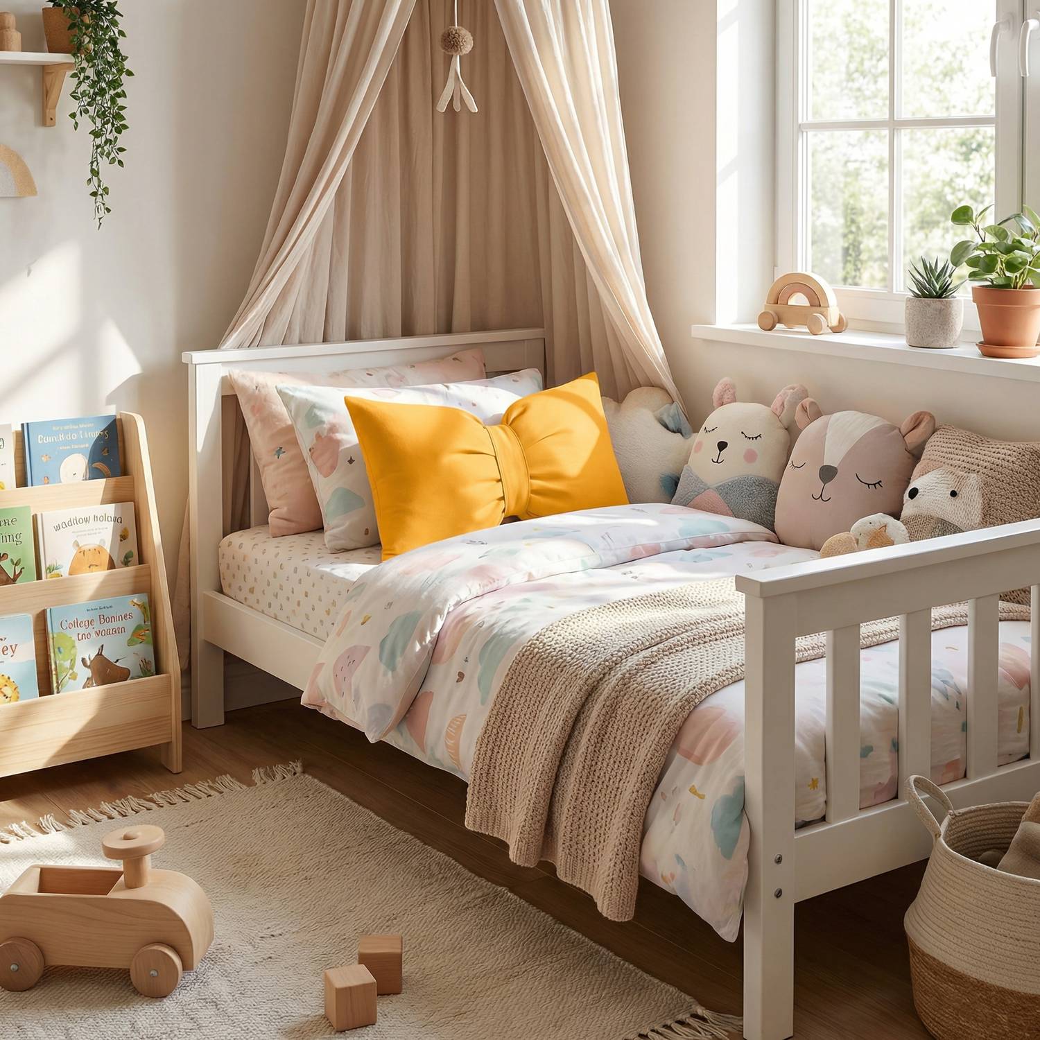 Wypełnienie antyalergiczne sprawia, że poduszka świetnie sprawdzi się również w pokoju dziecięcym.