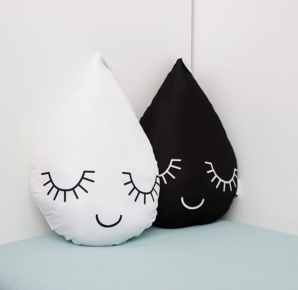 Poduszka dekoracyjna w rozmiarze 42x30 cm wykonana została z jednobarwnej tkaniny poliestrowej z super modnym nadrukiem rzęs - lashes. Jest to miękka i przyjemna w dotyku poduszka z drukowanym wzorem. Poduszka posiada oryginalny kształt kropli, nadający jej ultra nowoczesnego wyglądu. Może być wykorzystywana jako poduszka, Przytulanka dla dziecka czy dekoracja w nowoczesnym lofcie. Dzięki designerskiemu wzorowi i ciekawej kolorystyce idealnie dopasuje się do każdego wnętrza. Wyróżnia się przede wszystkim nowoczesnym i wyszukanym wzornictwem. Wysoka jakość użytych materiałów, dokładność i solidność wykonania, gwarantują trwałość w użytkowaniu.