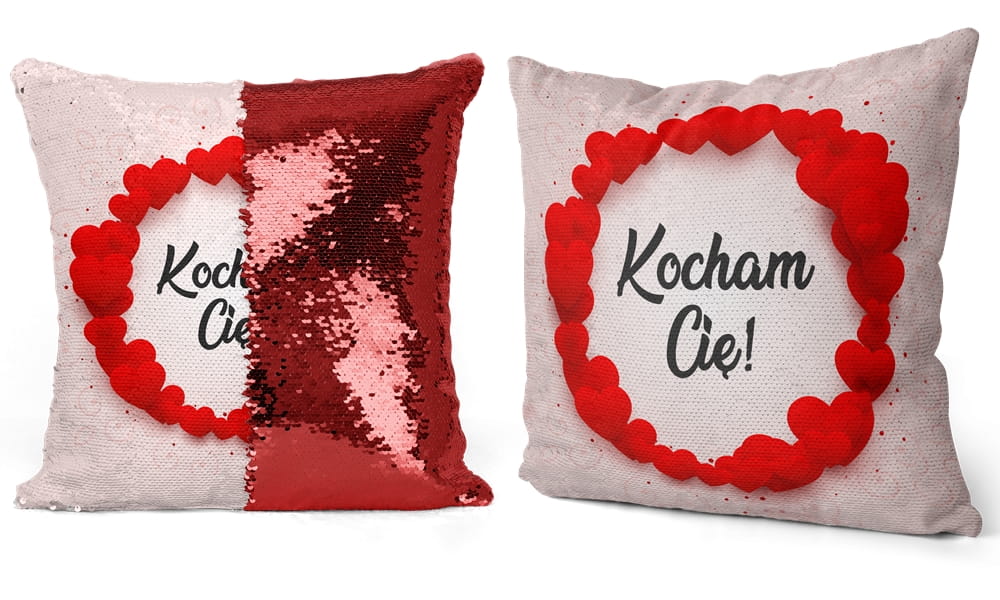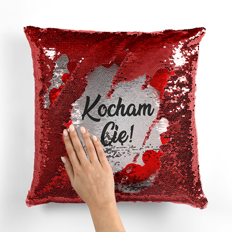 Poduszka LOVE cekiny 40x40 cm Kocham Cię Czerwona