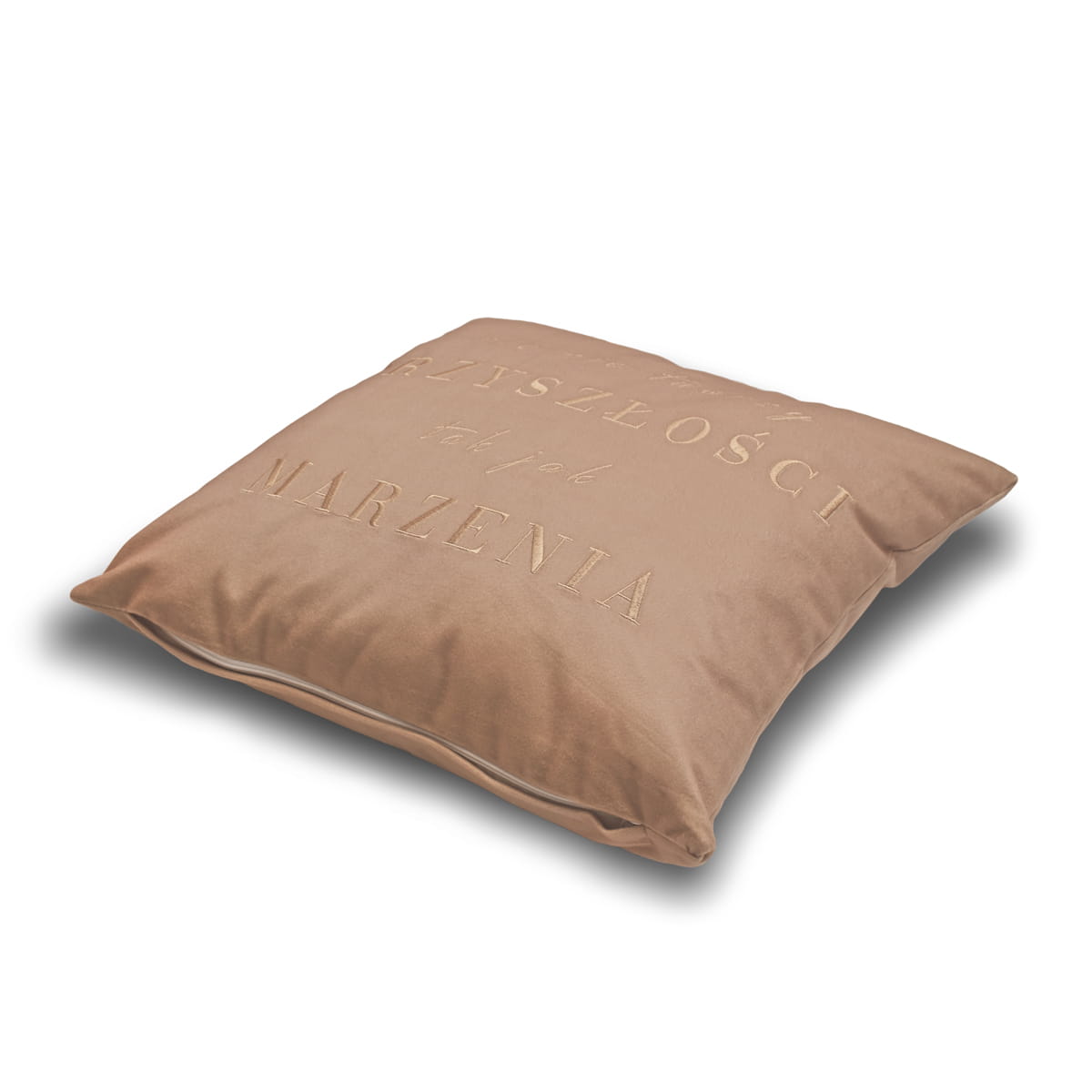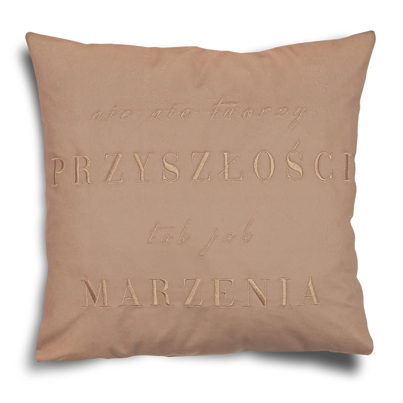 Miękka, miła w dotyku PODUSZKA WELUROWA VELVET z haftowanym napisem oraz wymiennym wkładem wewnętrznym