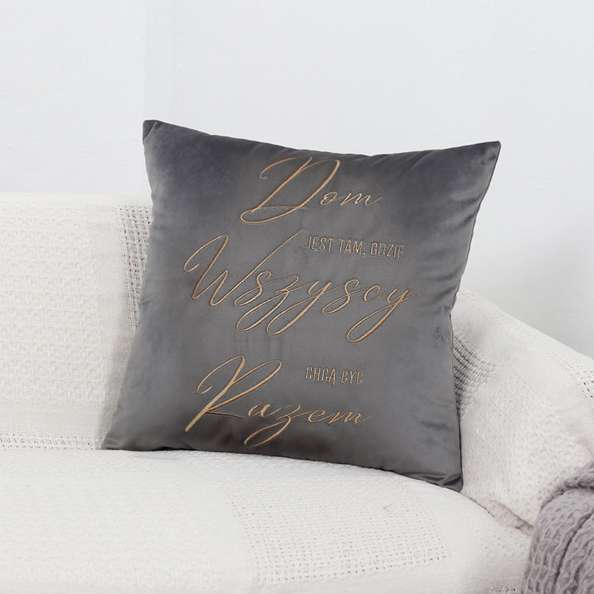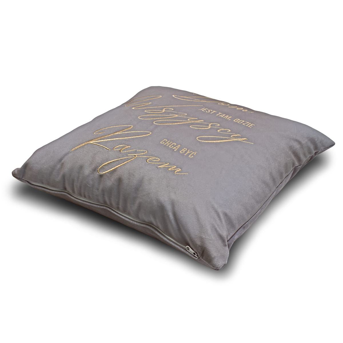 Miękka, miła w dotyku PODUSZKA WELUROWA VELVET z haftowanym napisem oraz wymiennym wkładem wewnętrznym