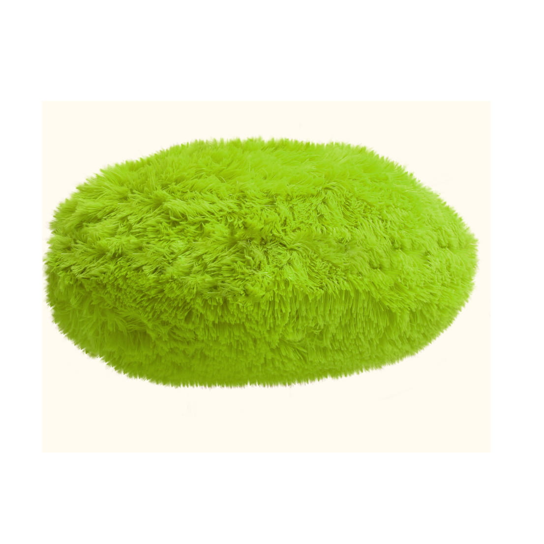 Poduszka w wyjątkowym kształcie koła o średnicy 45 cm wykonana z pluszowej dzianiny/ Eko futra, swoją strukturą przypomina miękkie zabawki pluszowe. Nie farbują i nie tracą kolorów.